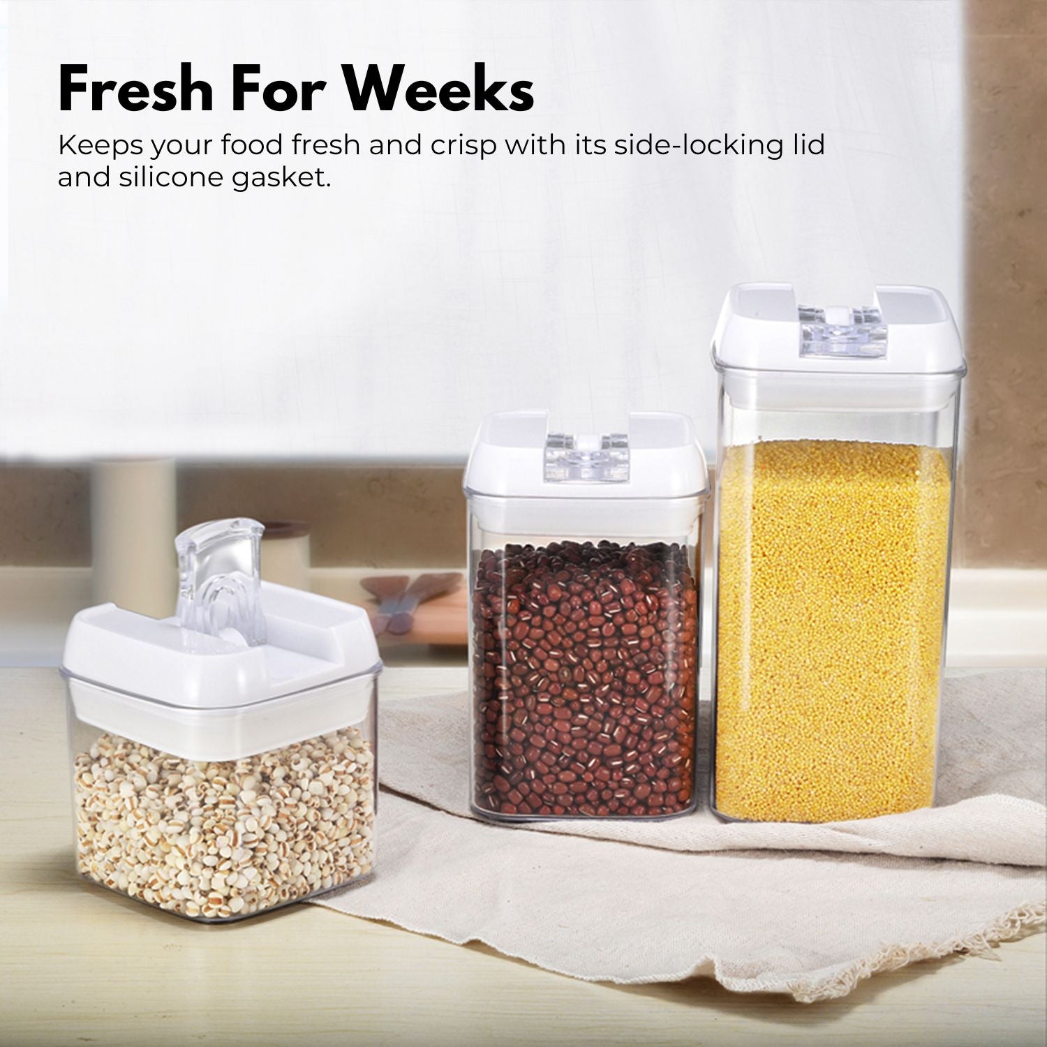 Airtight silicone gasket and side-locking lid seals your food to preserve and prolong its freshness. Feel the crunch of your biscuits and cereals even after weeks!