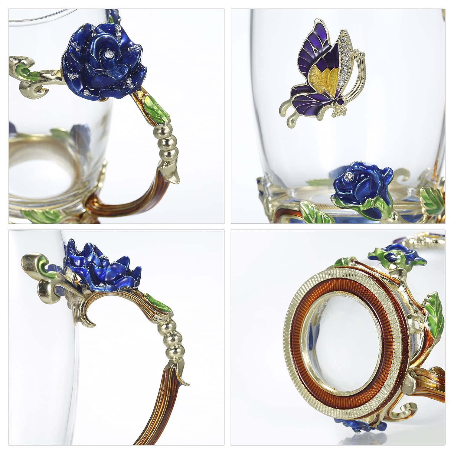 The flower glass mug has an elegant style with butterfly and rose flower 3D designs.