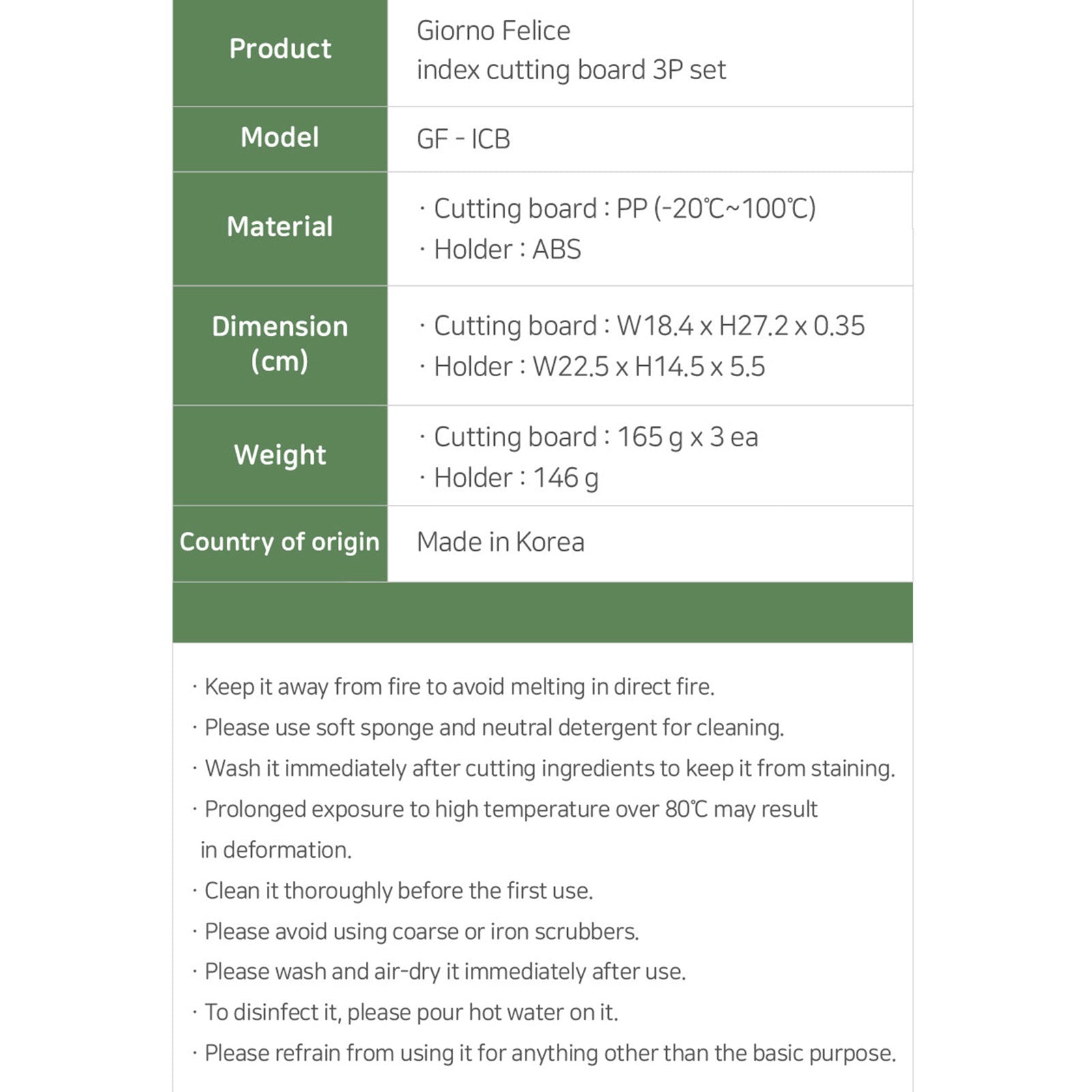 Experience a new culinary dimension with our Korean-made Index Cutting Board 3P with a Holder set that redefines hygiene, organization, and style. Ideal for food lovers, outdoor enthusiasts, and kitchen experts, this product enhances safety and efficiency.