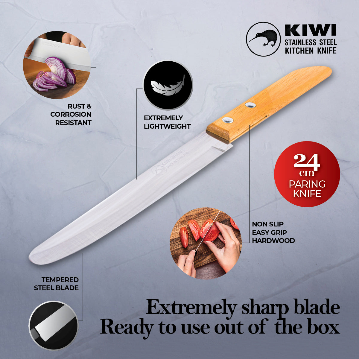 KIWI® These premium, professional pairing knives with tempered steel blades are rust and corrosion resistant. Exceptional quality and superbly constructed, they are ideal for use within food and restaurant industries.