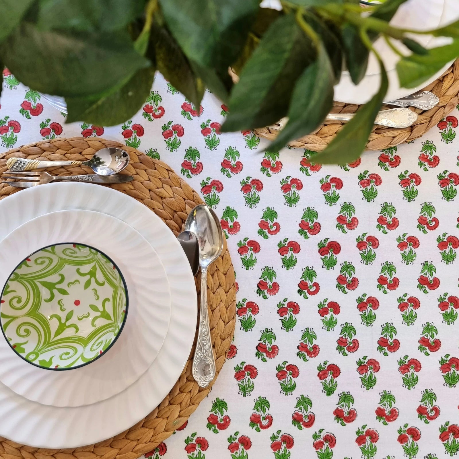 Kolka Mistletoe Hand Block-Printed & Screen Printed Textiles Tablecloth - Red