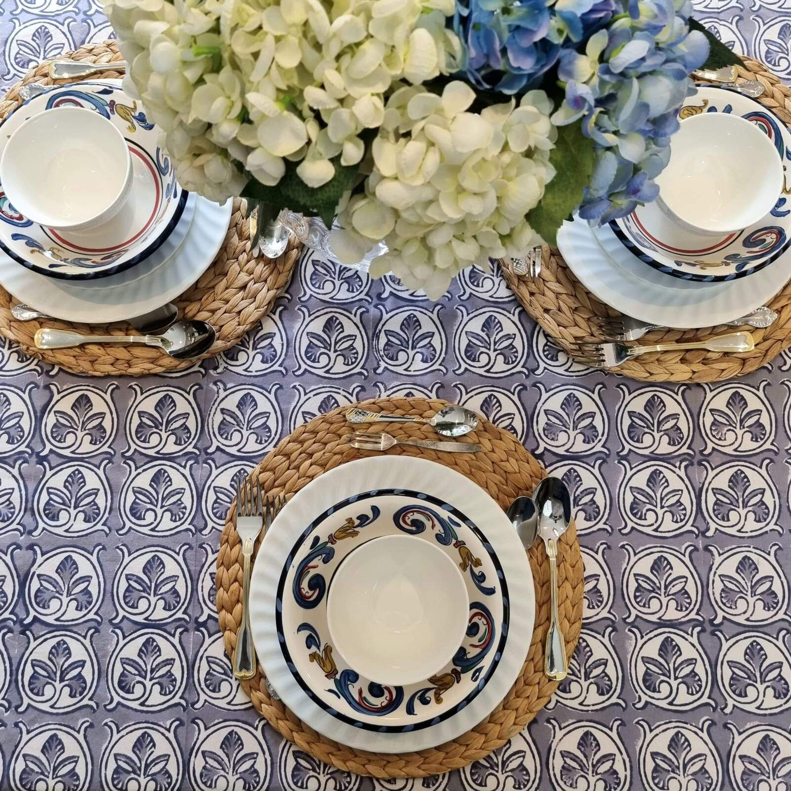 Kolka Lotus Handle Block-Printed Simple Dining Table Tablecloth - Grey