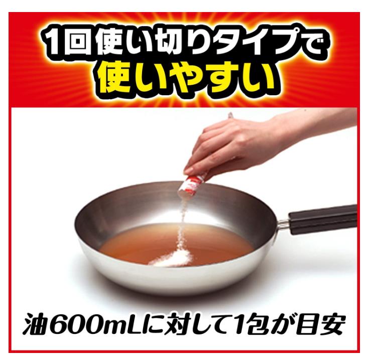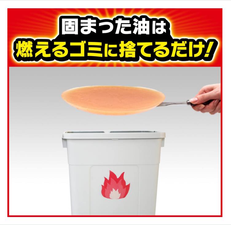 One package solidifies 600mL of oil, so you can easily throw away the oil with combustible garbage without getting your hands or kitchen dirty.