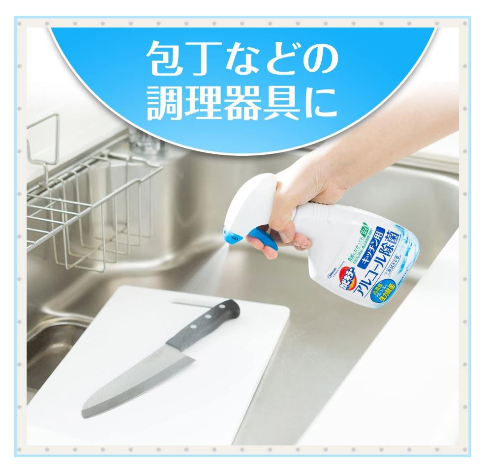 Cooking utensils such as cutting boards, knives, colanders, slicers, etc. Sink 1, removes moisture. 2. Spray until the object is wet (spray once per 10cm x 10cm). No need to wipe or rinse afterwards. Spray on countertops, dining tables, inside and outside of refrigerators, outside of kitchen appliances such as microwaves, doorknobs, and wipe with dry cloth.