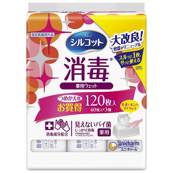This is a great value refill for '' Silcot Wet Tissues - Safe Disinfectant'', which contains plant-based disinfectant ingredients and does not have a strong alcohol odor.