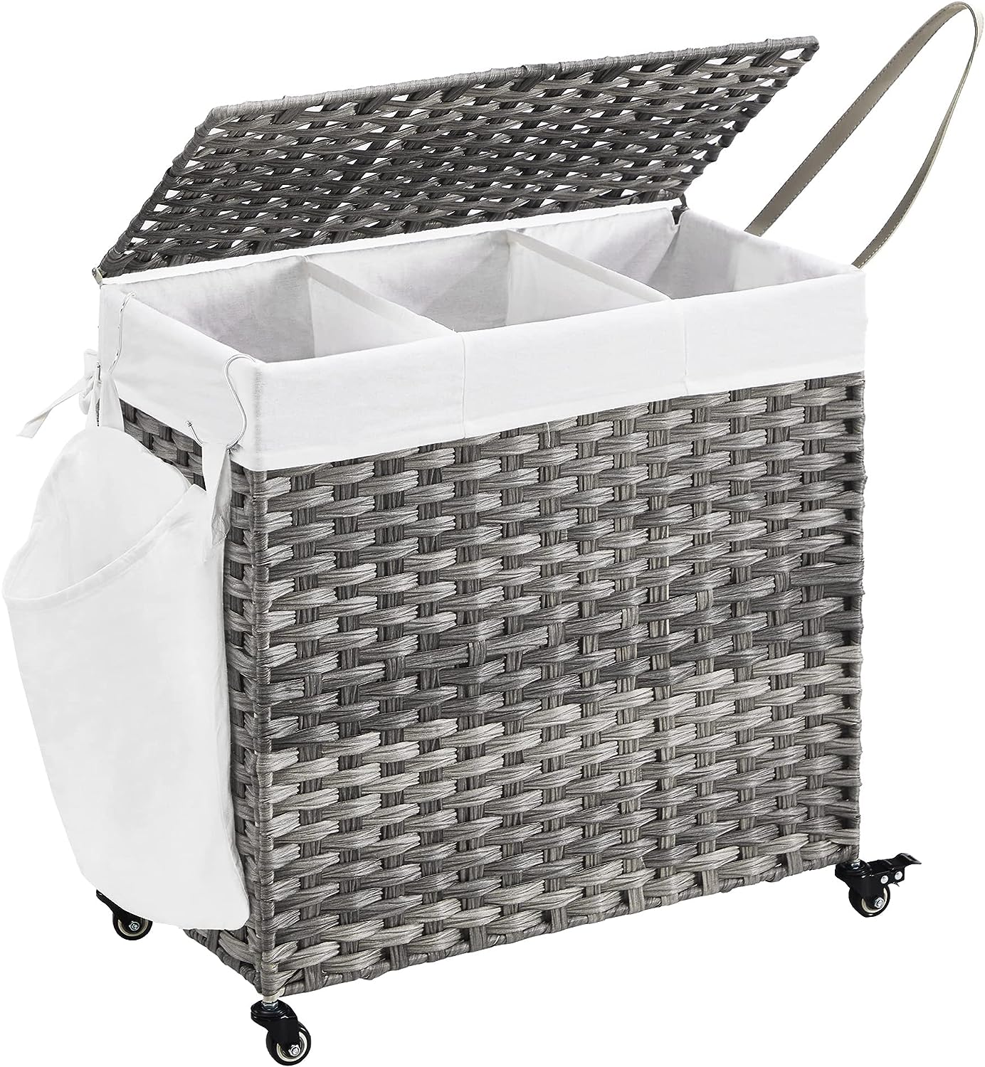 SONGMICS Laundry Hamper with Lid and Wheels 140L Grey