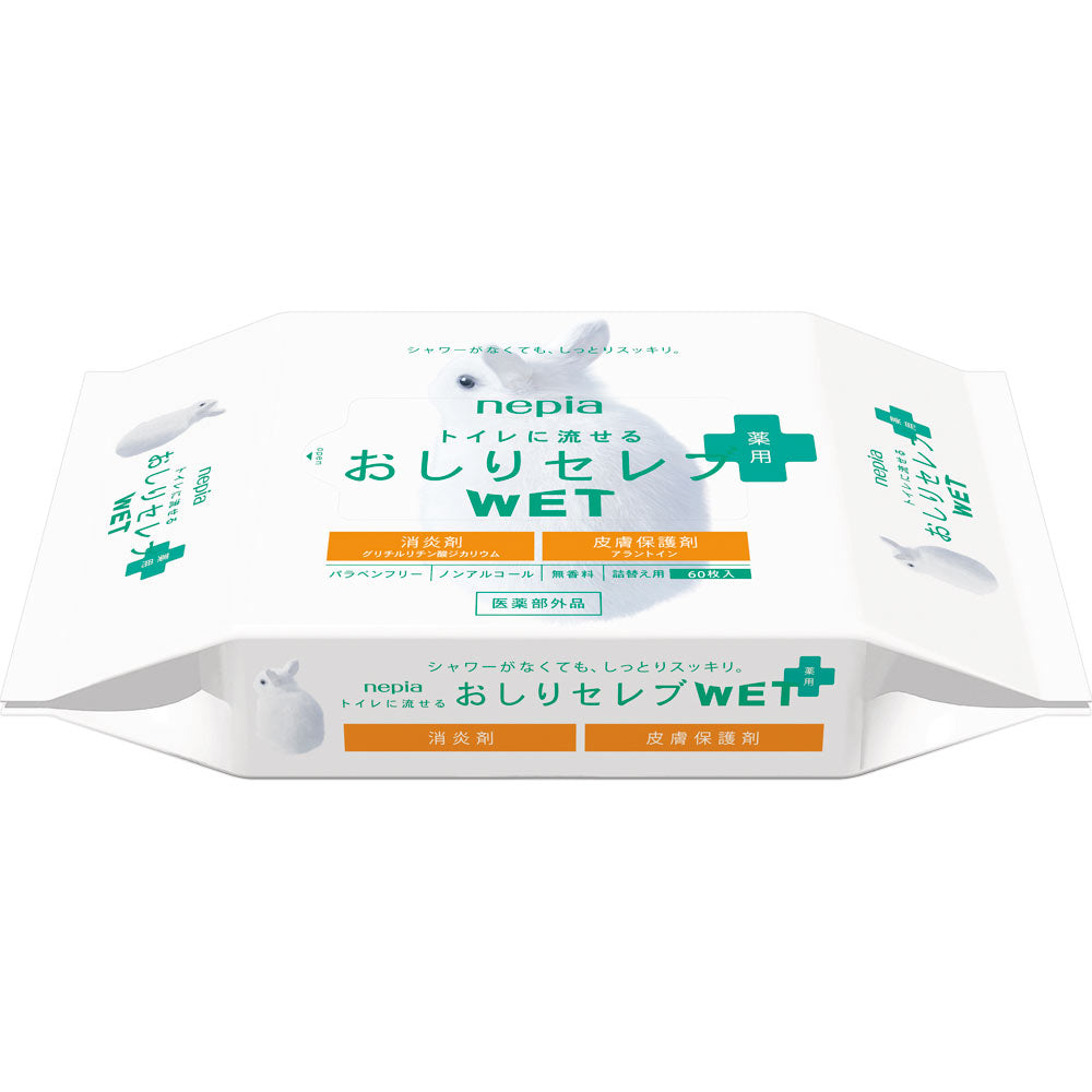 [6-PACK] Nepia super soft medicated wet toilet paper, anti-inflammatory ingredients, toilet flushable, unscented refill pack of 60 sheets