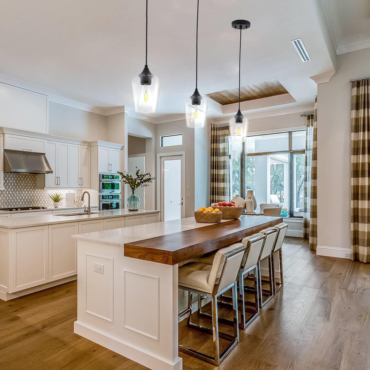 • Experience effortless installation with the matte black kitchen pendant light fixtures. Included are all the necessary hardware parts and a detailed manual for easy assembly. Plus, the open-bottom shade of the pendant lighting glass allows for easy access to the bulb, making removal and cleaning a breeze.
