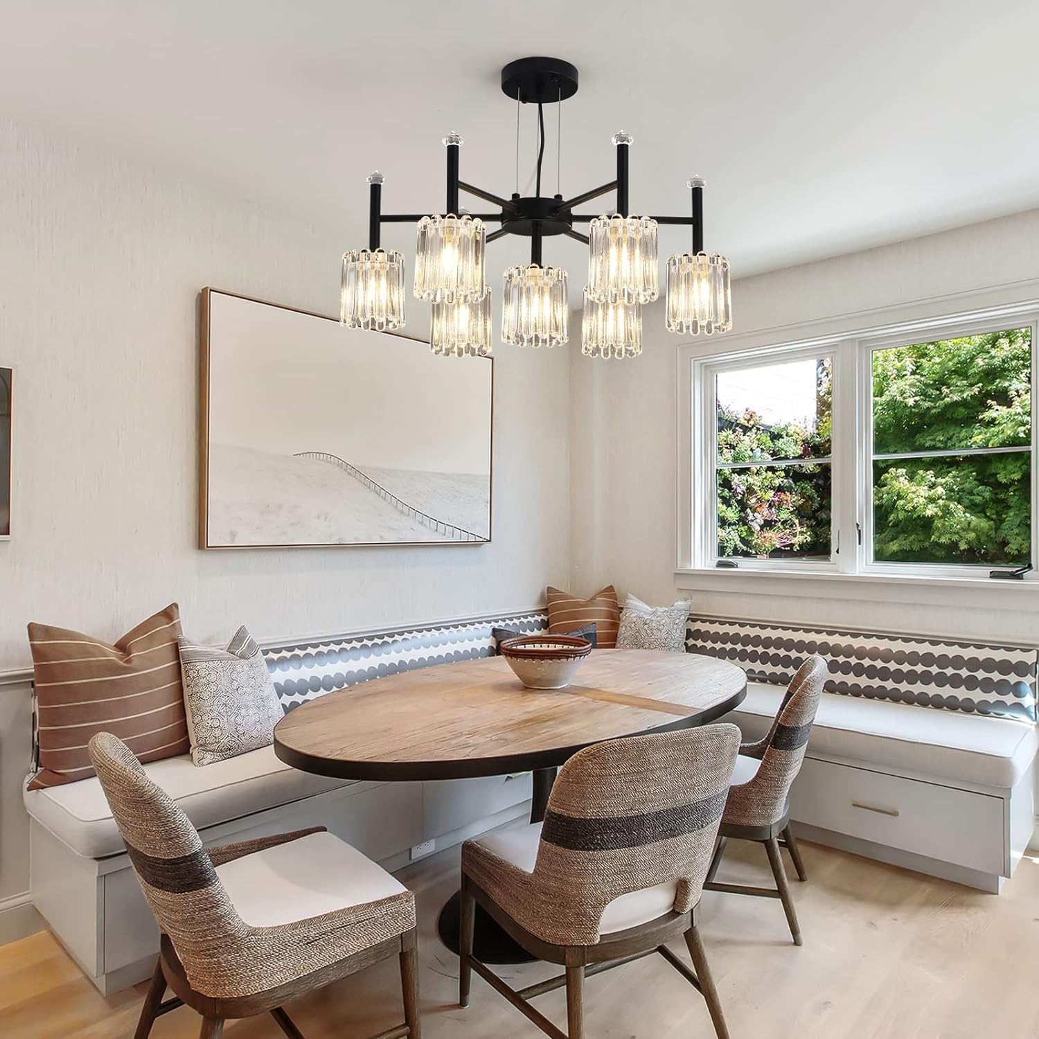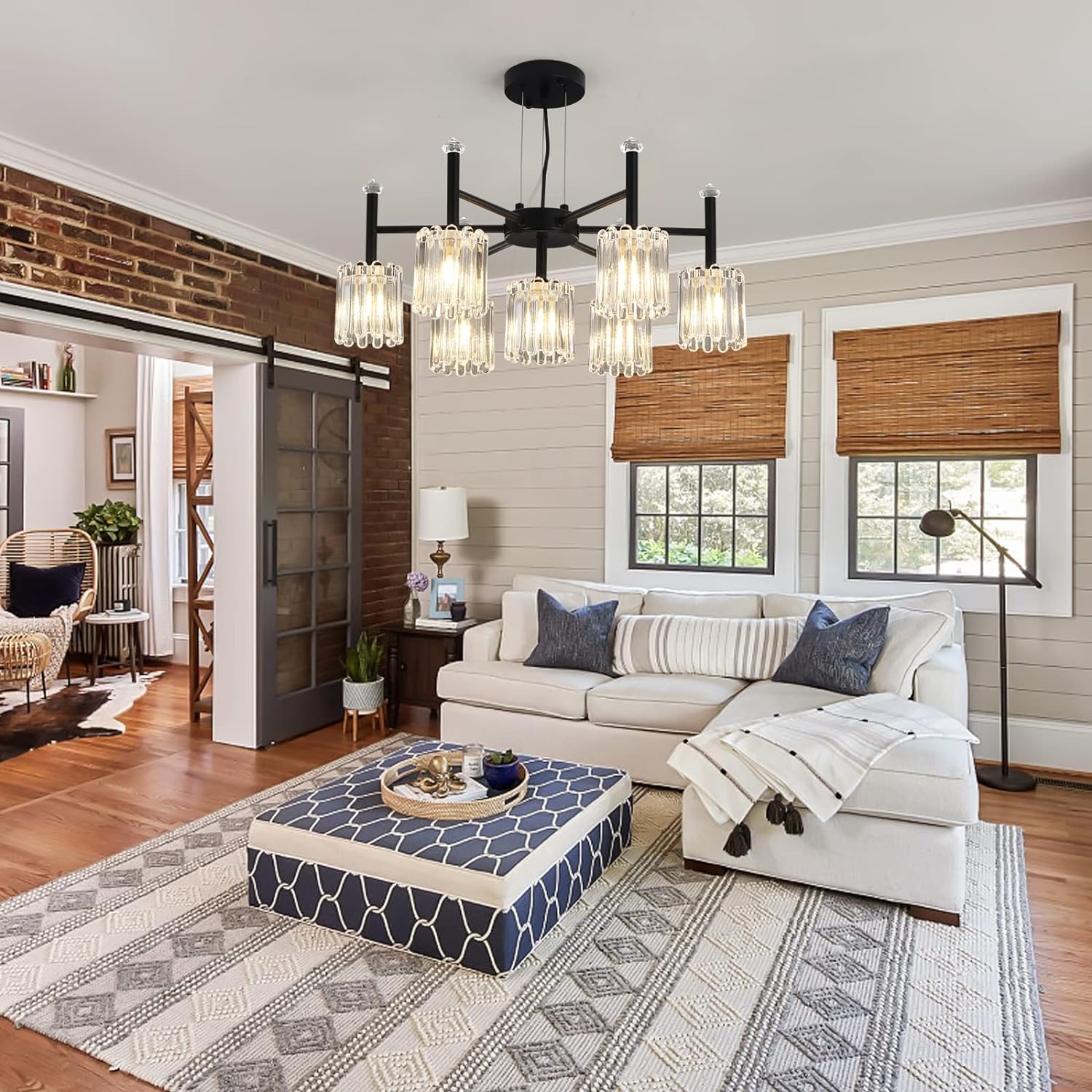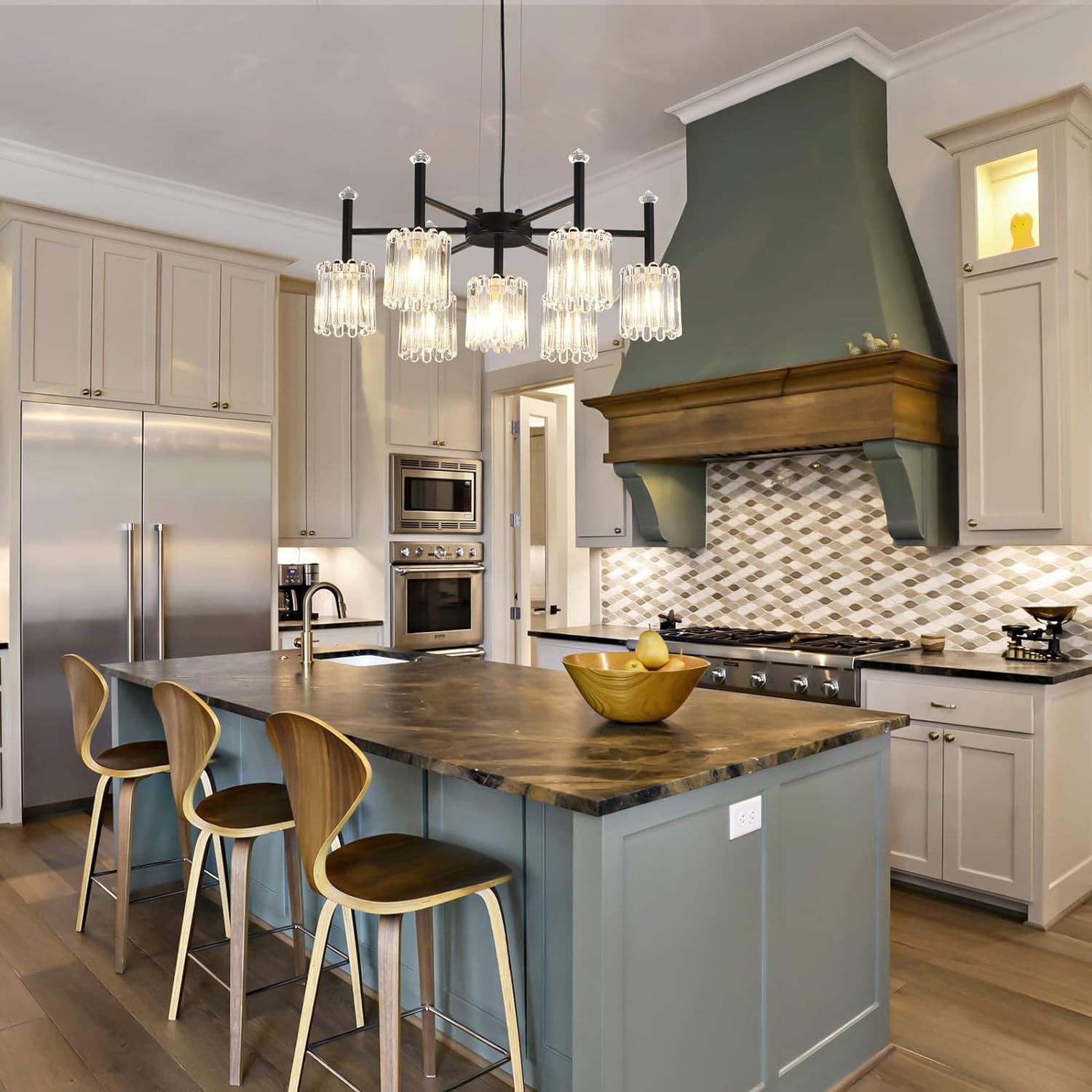 • This modern luxury chandelier features an acrylic lampshade and matte black metal frame, creating a dreamlike atmosphere in any space. Perfect for the dining room, kitchen, bedroom, restaurant, living room, and office.