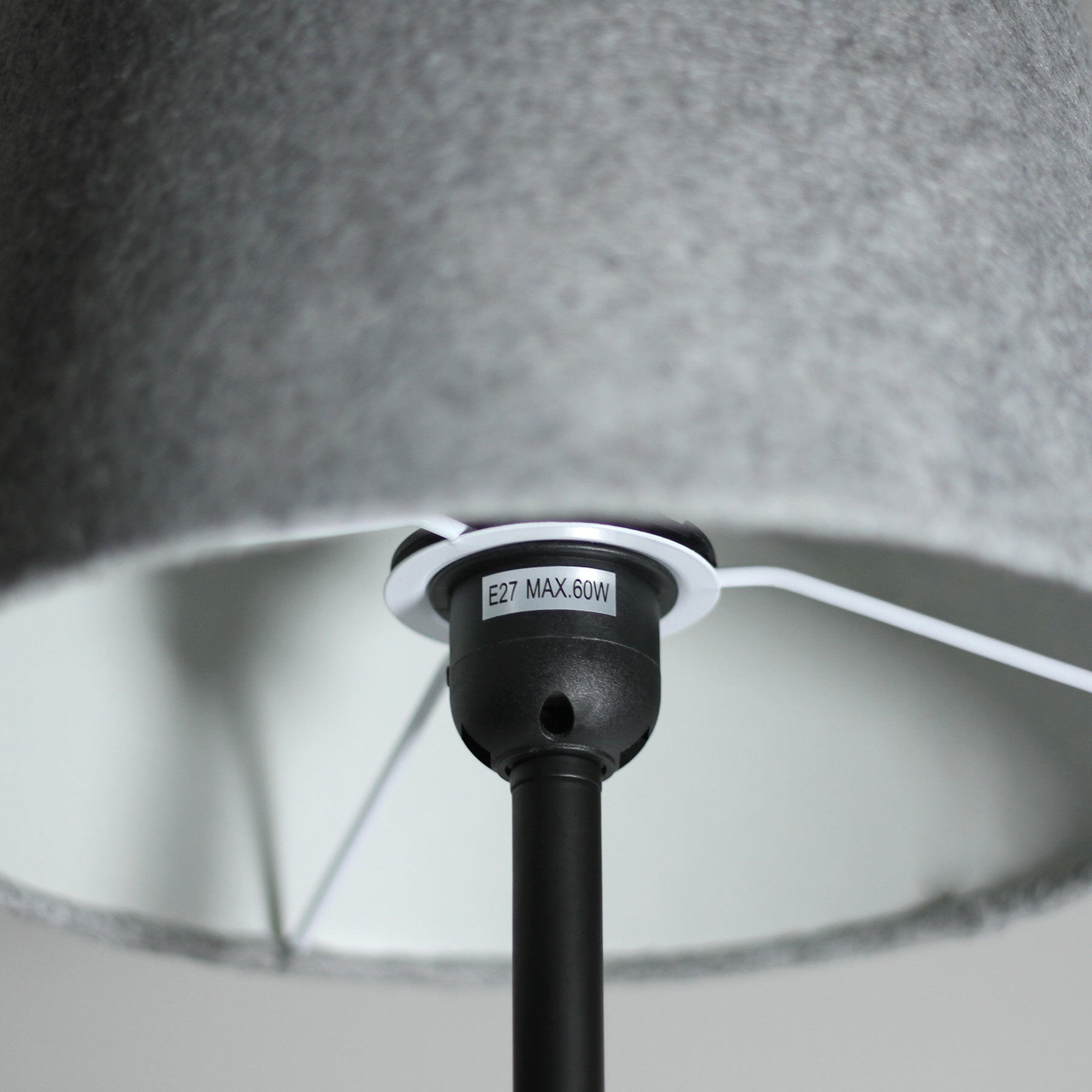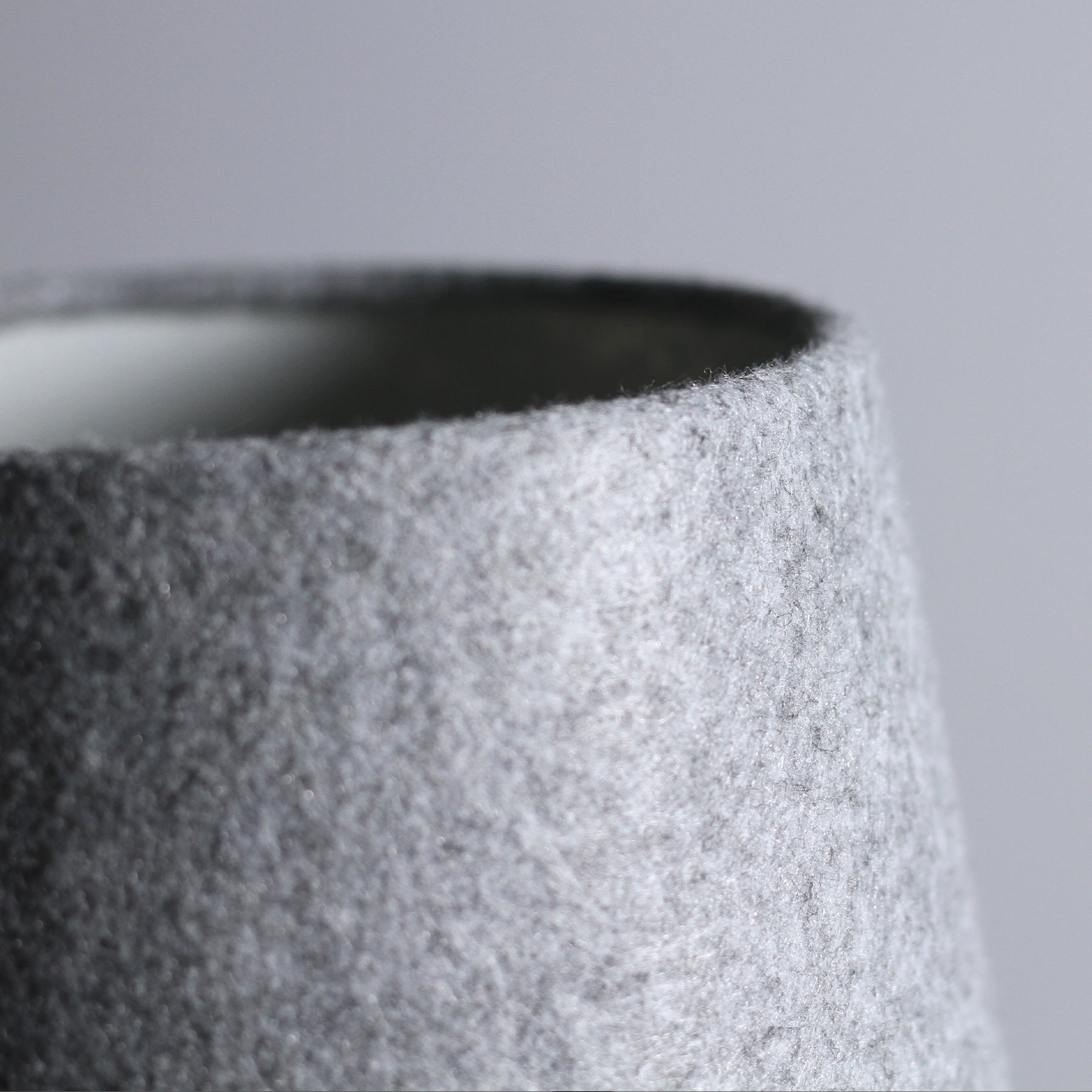 The grey cone-shaped felt lampshade corresponds to the concrete lamp base smoothly, and the matte black lamp pole perfectly separates the grey, suiting the overall organic appearance. The Jerome Table & Floor Lamp would work ideally with earthy home decors that use timber, stone and concrete throughout the house.