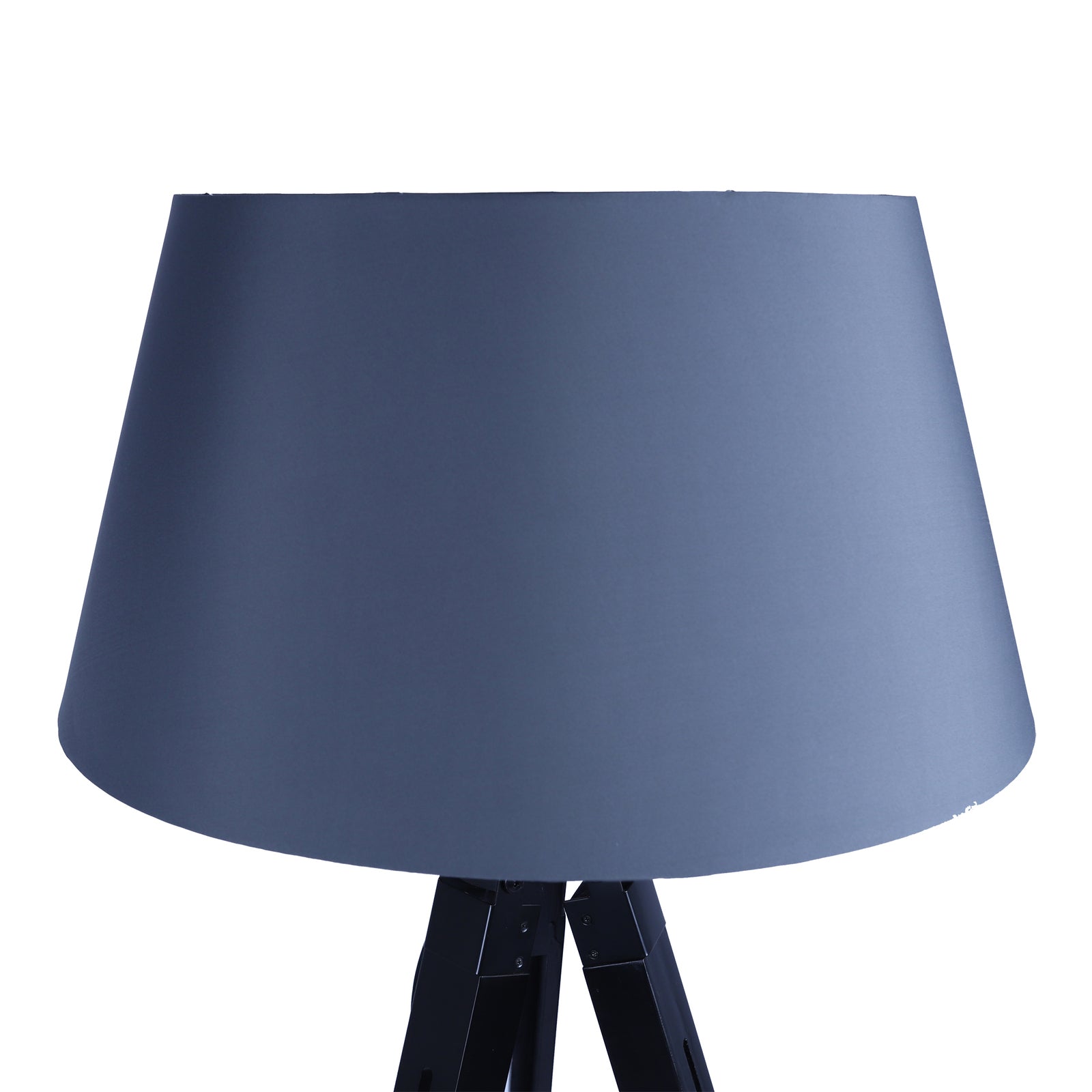 Modern style antique wood tripod floor lamp & washed white linen shade.