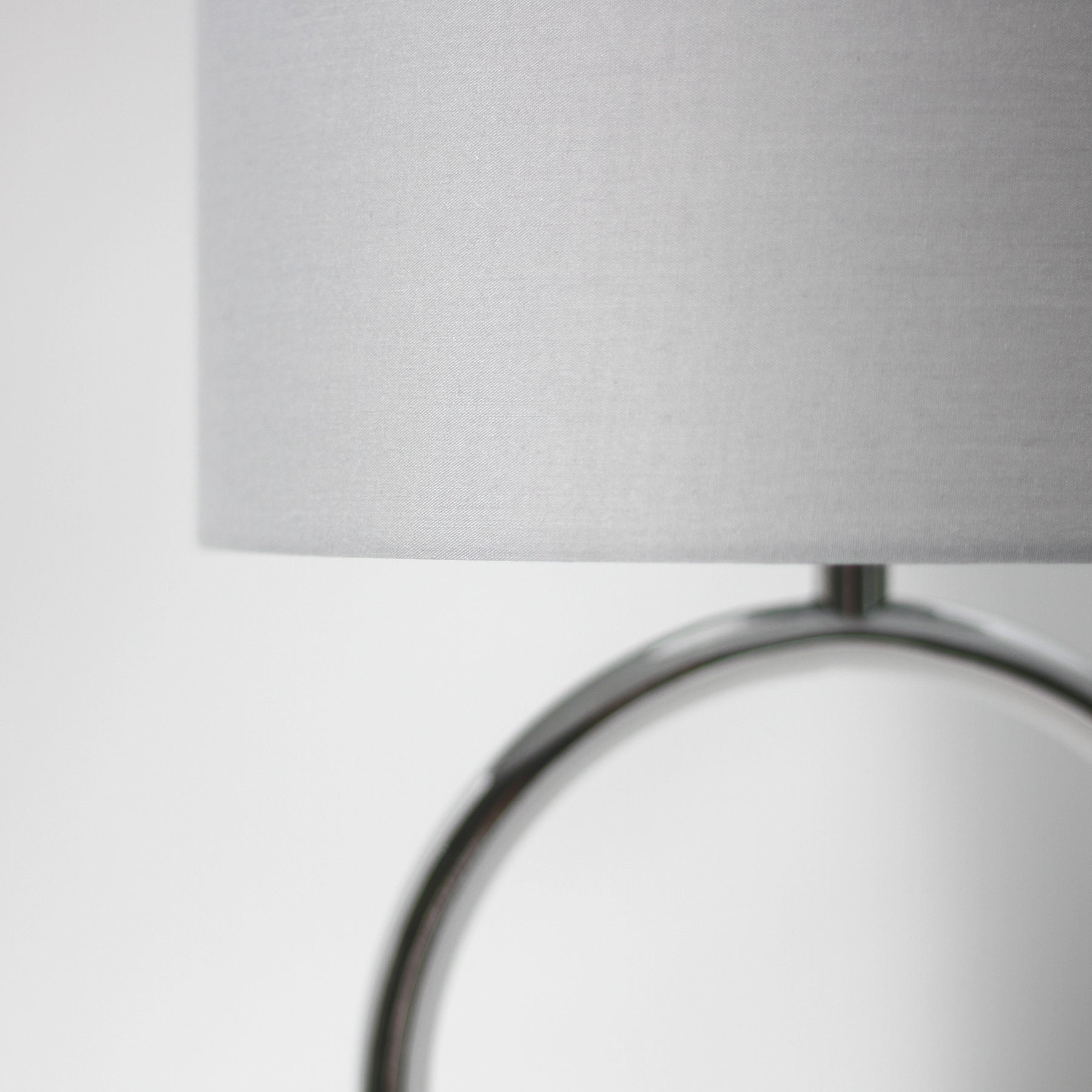 The Marie Table Lamp is topped with a fabric linen drum shade, which delivers a warm glow and an inviting ambience. The lamp is available in two great options, a chrome base and grey shade or a brass base and white shade. Both varieties look stunning in bedrooms and living spaces.