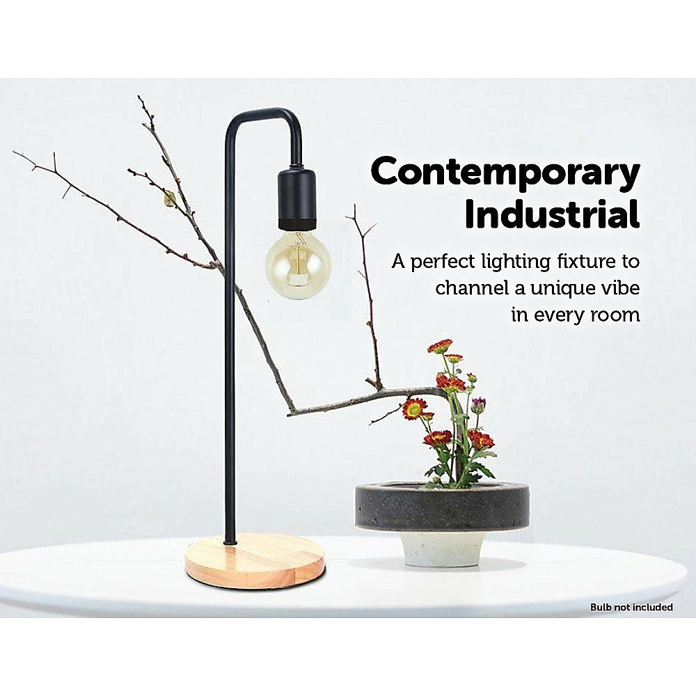 Modern Table lamp Desk Light Timber Base Bedside Bedroom Black