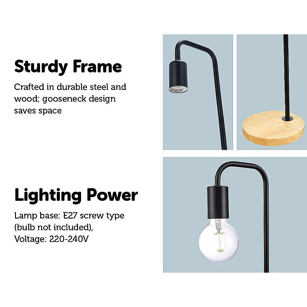 This lamp is the perfect addition to your desk, study, or bedroom with a gooseneck arm crafted from durable black steel and a natural wood base.