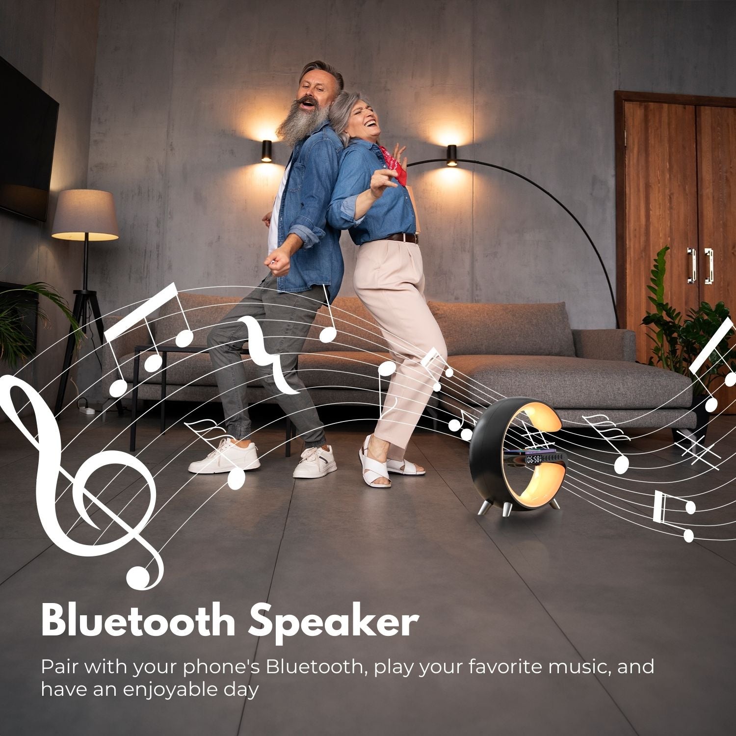 Multi functional bedside lamp: It is not only a bedside table lamp, but also has a 15W fast wireless charging, Bluetooth speaker, music, clock, alarm clock, sleep light, sunrise wake-up light, and atmosphere light.