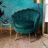 Iconic design. Timeless appeal. Our Artiss Armchair is the epitome of trendsetting style designed for the bold and passionate. With its thick padding of high resilience foam and velvet fabric upholstery, the armchair is perfect as a reading chair or a favourite relaxation seat. The vintage-style scallop shell back wraps around and hugs your body to provide perfect support and comfort. The splayed metal legs in glamorous gold give the armchair loads of character as well as providing a very stable base. Not least, the workmanship is meticulous with the fluid corners and sturdy wooden frame. The armchair will blend well with any setting from classic to contemporary and will also soften the flow of rooms with angular furniture and accents.