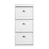 You are shoe proud. That is why you need ample space for all that wonderful footwear. Organise and save your floor space with our Shoe Cabinet and have a clutter-free entrance at all times. The three storage compartments are pull-down for easy access and have two tiers of adjustable shelves so that they can fit different footwear of various shapes and sizes. In fact, up to 18 of your favourite pairs would fit comfortably in it. Made of premium E1 MDF with smooth NC lacquer finish, the shoe cabinet is strong and durable to withstand daily robust use. Not least, its classic design, with beautiful retro-style metal cup pull handles, definitely lends a touch of elegance to any home.