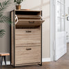 You are shoe proud. That is why you need ample space for all that wonderful footwear. Organise and save your floor space with our Artiss Shoe Cabinet and have a clutter-free entrance at all times. The three storage compartments are pull-down for easy access and have adjustable shelves so that they can fit different footwear of all shapes and sizes. In fact, up to 24 of your favourite pairs would fit comfortably in it. Solidly constructed with metal side frames, thick particle board and smooth paper veneer finish, the shoe cabinet is strong and durable to withstand daily robust use. Not least, the eclectic industrial design with beautiful black vintage-style handles definitely lends a touch of elegance to any home.