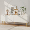 Introducing the Riley Entertainment Unit, a stylish and functional addition to your living space. This unit features a 4-door cabinet with reeded door panels, adding a touch of elegance to its design. With its sturdy construction and metal golden legs, it not only provides durability but also adds a modern flair to your room. The Riley Entertainment Unit is not only aesthetically pleasing but also practical. It comes with floor protectors to prevent any damage to your floors and cable management to keep your wires organised and tangle-free. With its high weight capacity, you can confidently store your entertainment devices and accessories. Assembly is a breeze, making it easy for you to set up and enjoy your entertainment area in no time. Entertain in style with the Riley Entertainment Unit from Artiss.