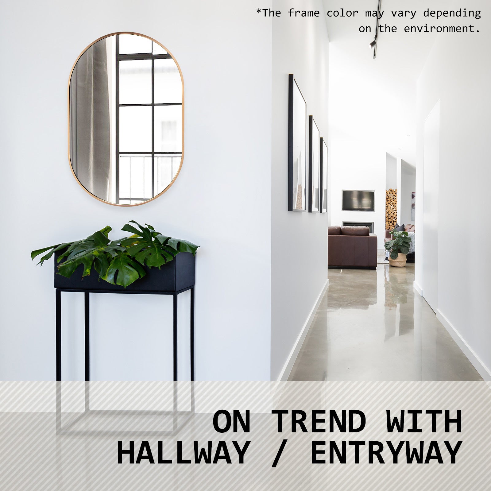 The oval mirror is stylish and neat in design comes with a 2.8cm thickness slender aluminium frame that is sure to capture the attention of all. Plus, its curved lines all rounds will become a central focal point in any room which makes spaces feel more inviting and relaxing.