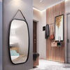 Black Bathroom Wall Mount Hanging Bamboo Frame Mirror Adjustable Strap Wall Mirror Home Decor
