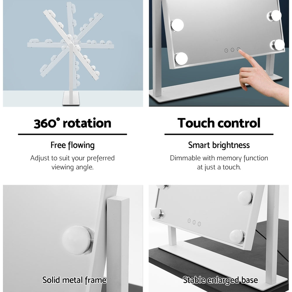 Fairest beauty looks even better with our Embellir Standing Makeup Mirror. Looking very much like a celebrity makeup mirror, our mirror features nine LED bulbs on its slim 2.5cm thick frame. In fact, the entire mirror is almost frameless. The lights can be adjusted for brightness and colour, from cool white to warm white with its touch control, offering a soft and ambient glow to complement your true image. Better still, the mirror is totally rotable and stands on an enlarged base for added stability. Mirror your exceptional countenance with this lovely Embellir Standing Makeup Mirror.