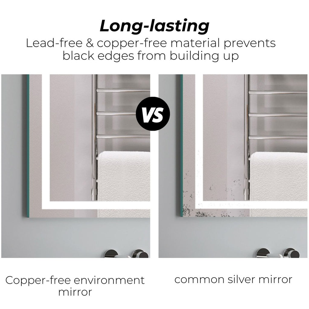 • This bathroom mirror has adjustable LED brightness and enable anti-fogging function with smart touch control