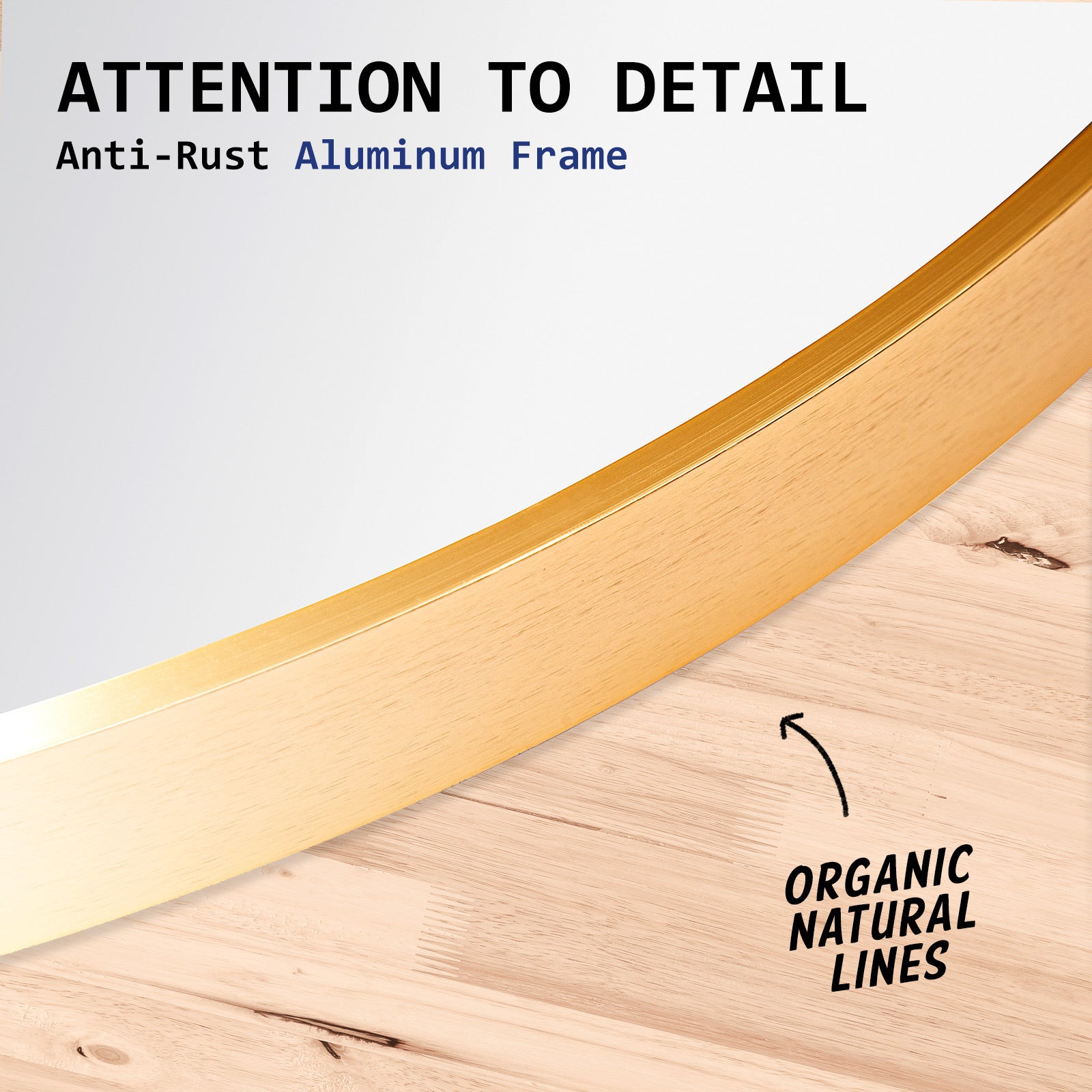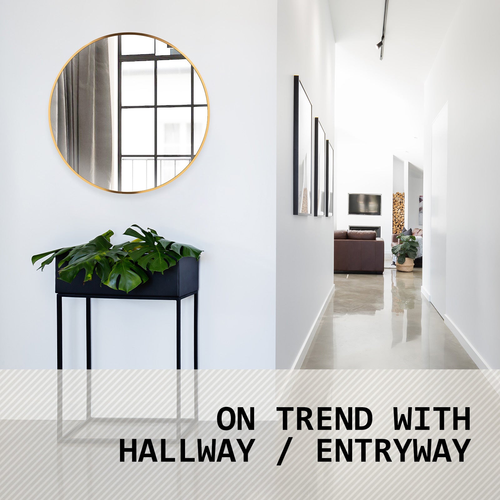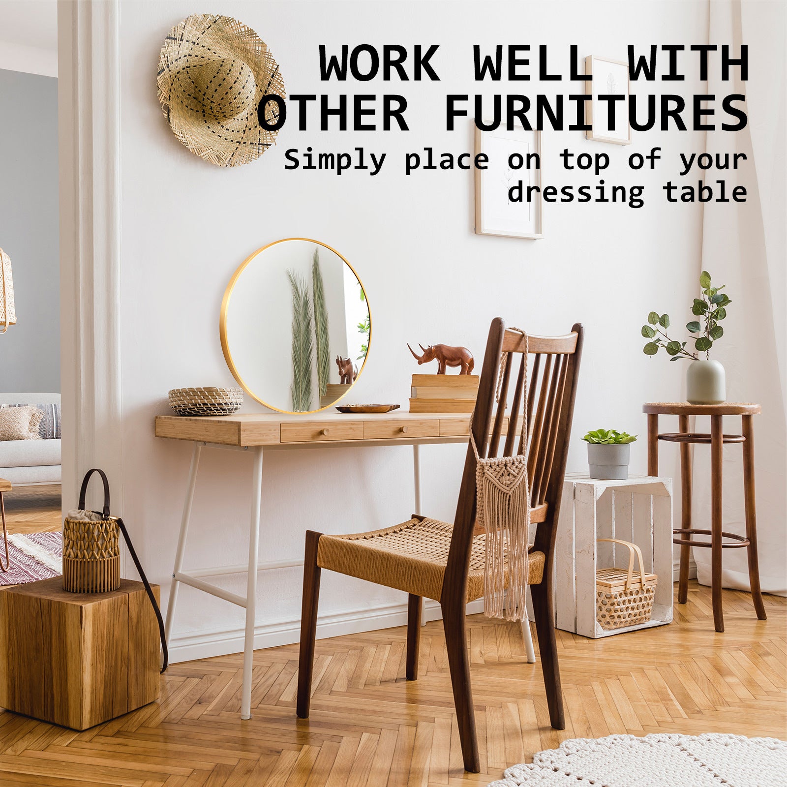 The round mirror is modern and clean in design comes with a 3.9cm thickness minimalistic aluminum frame that is sure to capture the attention of all. Plus, its curved lines all rounds will become a central focal point in any room which makes spaces feel more inviting and relaxing.