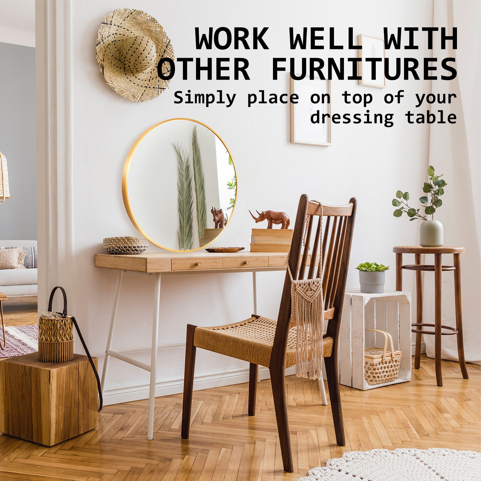 Mirror, mirror on the wall, who is the fairest of them all? With La Bella Wall Round Mirror 70cm, apart from seeing your fairest beauty in it, beyond its practical use for personal grooming, strategically it has almost a magical ability to decorate a room and make a room look larger and brighter.