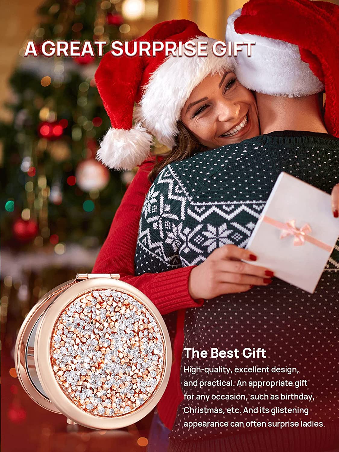 Mini Mix Diamond 1X/2X Magnifying Round Metal Pocket Makeup Mirror (Gose Gold)