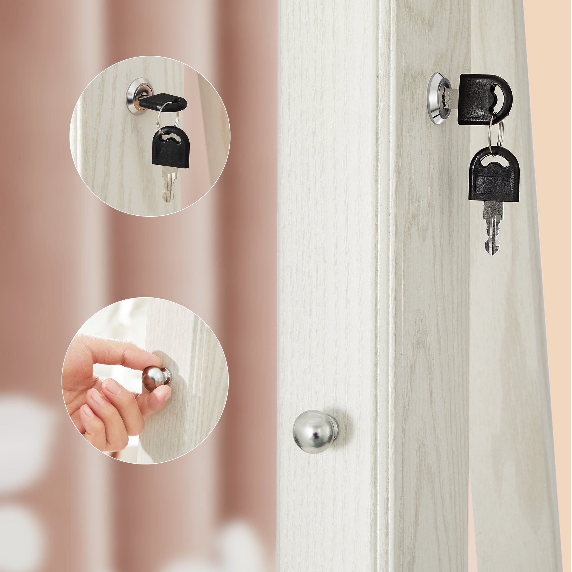 Practical Function: The 2 shelves at the back of the mirror cabinet offer storage possibilities for your bags, makeup tools and clothing pieces. The lower edge of the cabinet is almost on the ground, which allows for a larger storage area. With the built-in mirror, there is no need to close the door to look into the mirror when you are making up or wearing jewelry