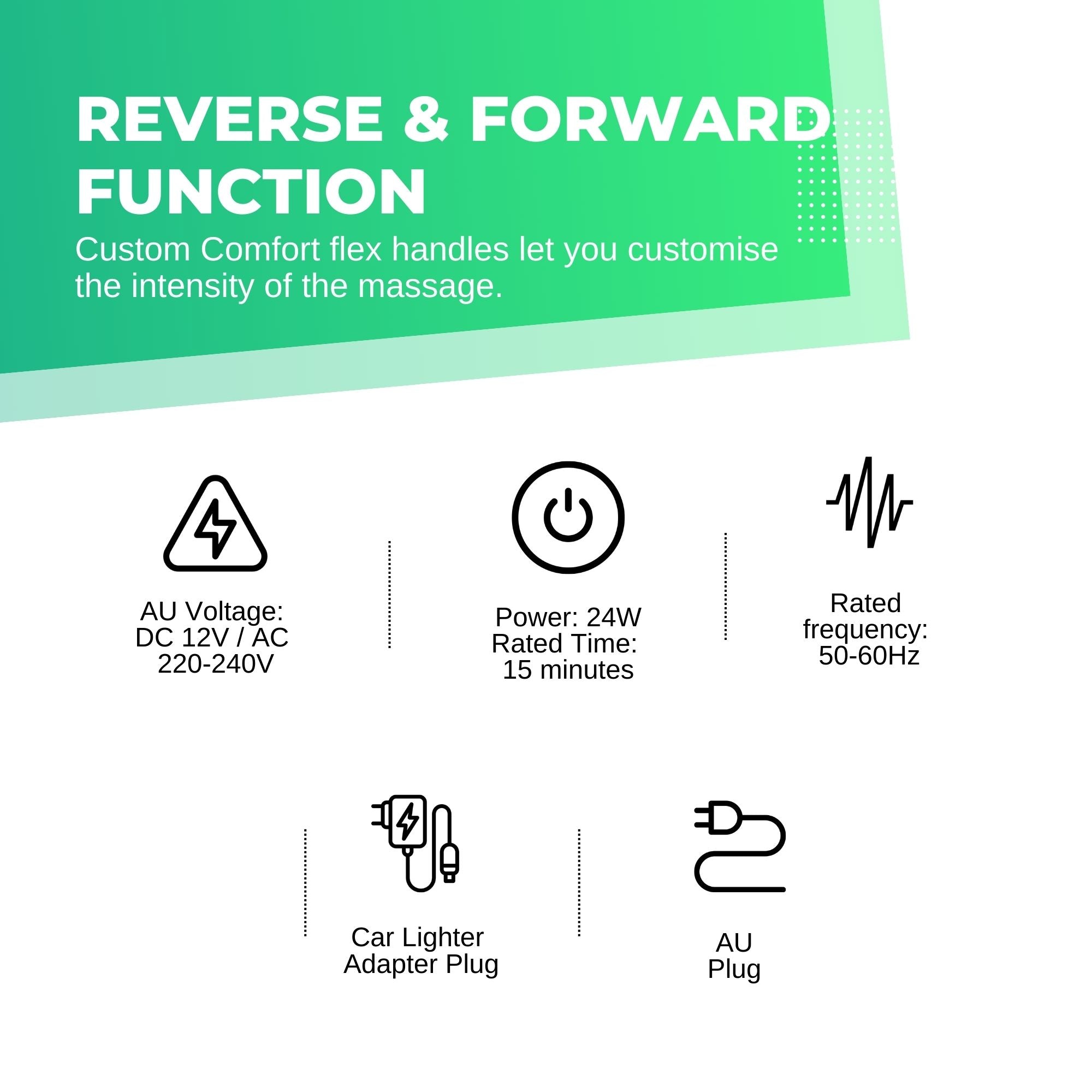 Custom Comfort flex handles let you customise the intensity of the massage. Extended coverage area targets neck as well as shoulders.