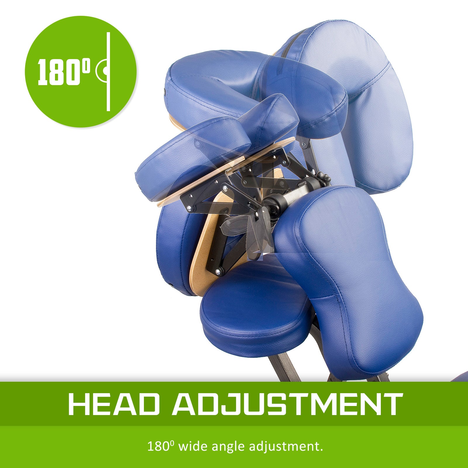 Its sturdy structure allows the table to support up to 500 Pounds. This portable massage chair can be adjusted without removing any parts. The chest pad is fully contoured for greater comfort for both men and women. The seat, armrest, chest pad and headrest are fully adjustable to accommodate user of different heights. The upholstery is comprised of two-inch thick high density small-cell foam padding and oil & water-proof vinyl. This massage table is ideal for students, new practitioners, and home users with limited budgets.