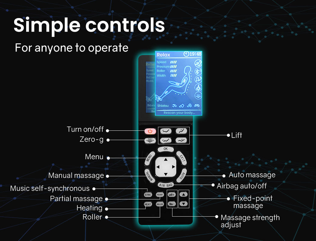Whether you live a sedentary or highly active lifestyle, you can escape to ‘cloud nine’ and experience the maximum massage effect with the zero gravity function. By returning the body to its natural resting position, the integrated systems can then truly offer heightened relaxation and relief from chronic joint and back pain.