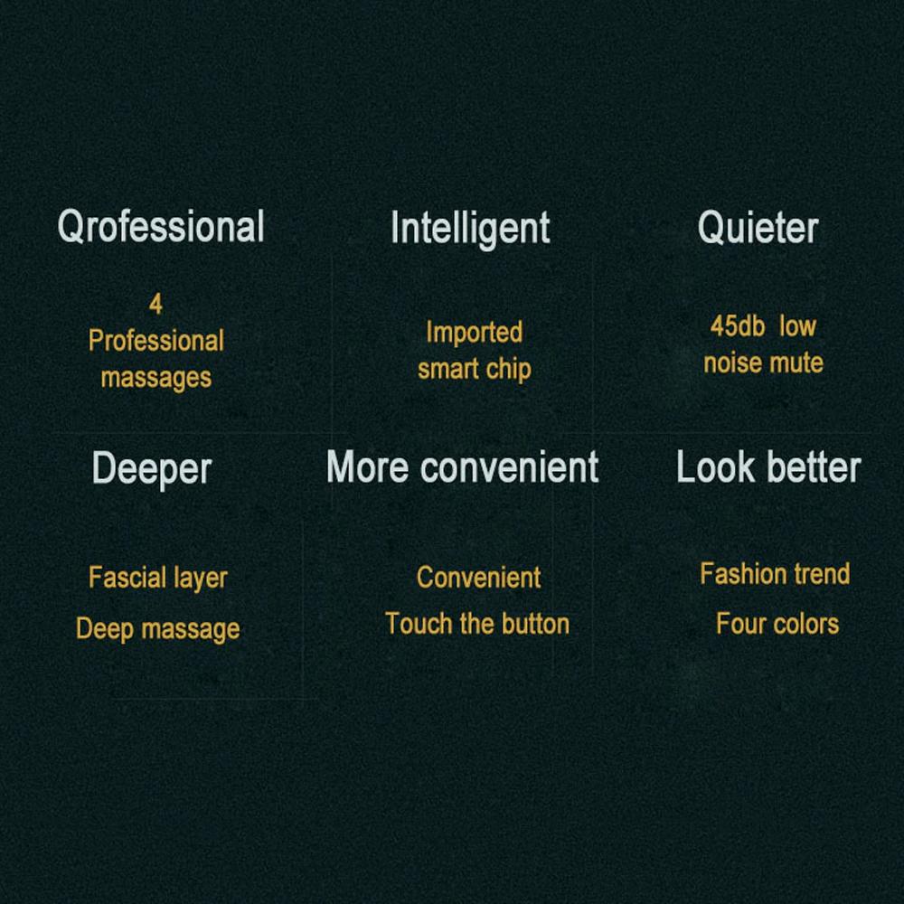 High speed noise reduction motor, strong power, low noise vibration; use increased power motor, bring strong and surging power; 3200 rpm high speed impact, relieve muscle pain after exercise.