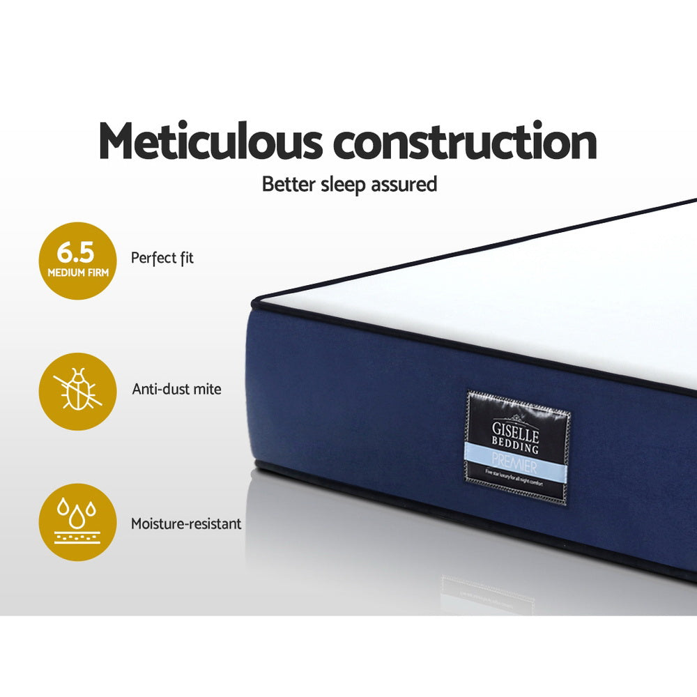 Are you waking up with muscle and body aches every day? Is your mattress not providing optimum support? If so, our Giselle Bedding Naimah series mattress with 7-zone EvenZon pocket spring system comes to your rescue. It adds a layer of comfort and tranquility to your slumber with its excellent support system. Crafted from quality materials with a medium-firm firmness level, our mattress is an epitome of excellent craftsmanship and innovative sleep technology. The Jacquard knitted bamboo fabric ensures you stay comfortable while you’re fast asleep, and its 7-zone EvenZon pocket spring system ensures zero partner disturbance. The mattress also features enhanced 6-turn coil for ultimate support and a high-density egg-shaped foam for better ventilation. Temperature regulation from the natural latex layer keeps you cool and comfy throughout the night. Additionally, the mattress is hygienically constructed to free your body from allergens and offers 99% dust mite resistance. It also doesn’t include harmful chemicals for your safety and comfort. Better night sleep is assured with Giselle Bedding Naimah series mattress.