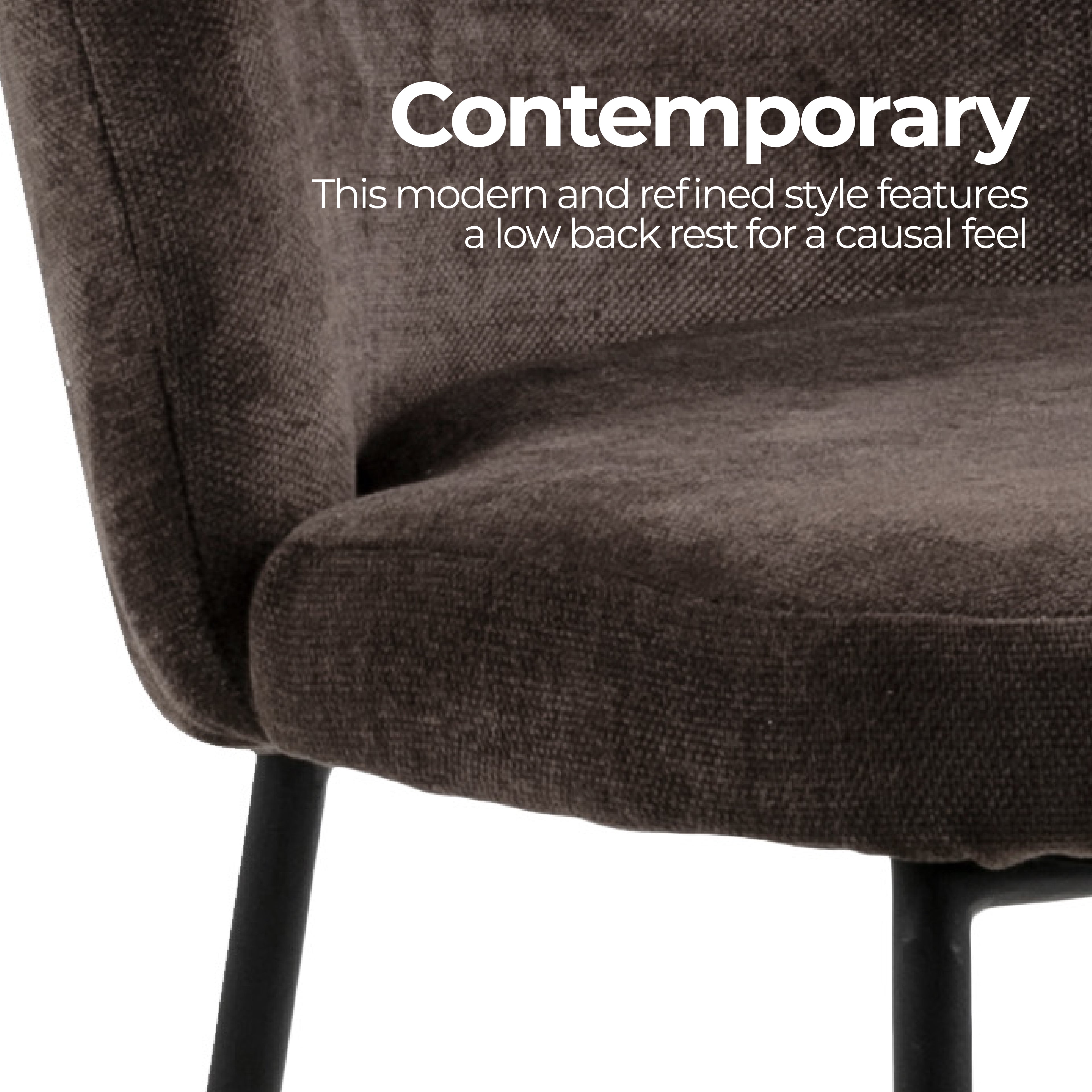 Elevate the style of your kitchen or home bar with the Nelson Barstool. This piece boasts a sleek contemporary design that perfectly blends functionality and aesthetics. Wrapped in a 100% polyester fabric, it offers a comfortable and durable seating experience. The sturdy steel frame powder coated in a stylish black finish ensures longevity while complementing the overall design. Its low backrest and integrated footrest offer the ultimate in comfort and support. With its 100cm height, this barstool is designed to fit seamlessly under standard countertops, making it an excellent choice for kitchens and bars alike.