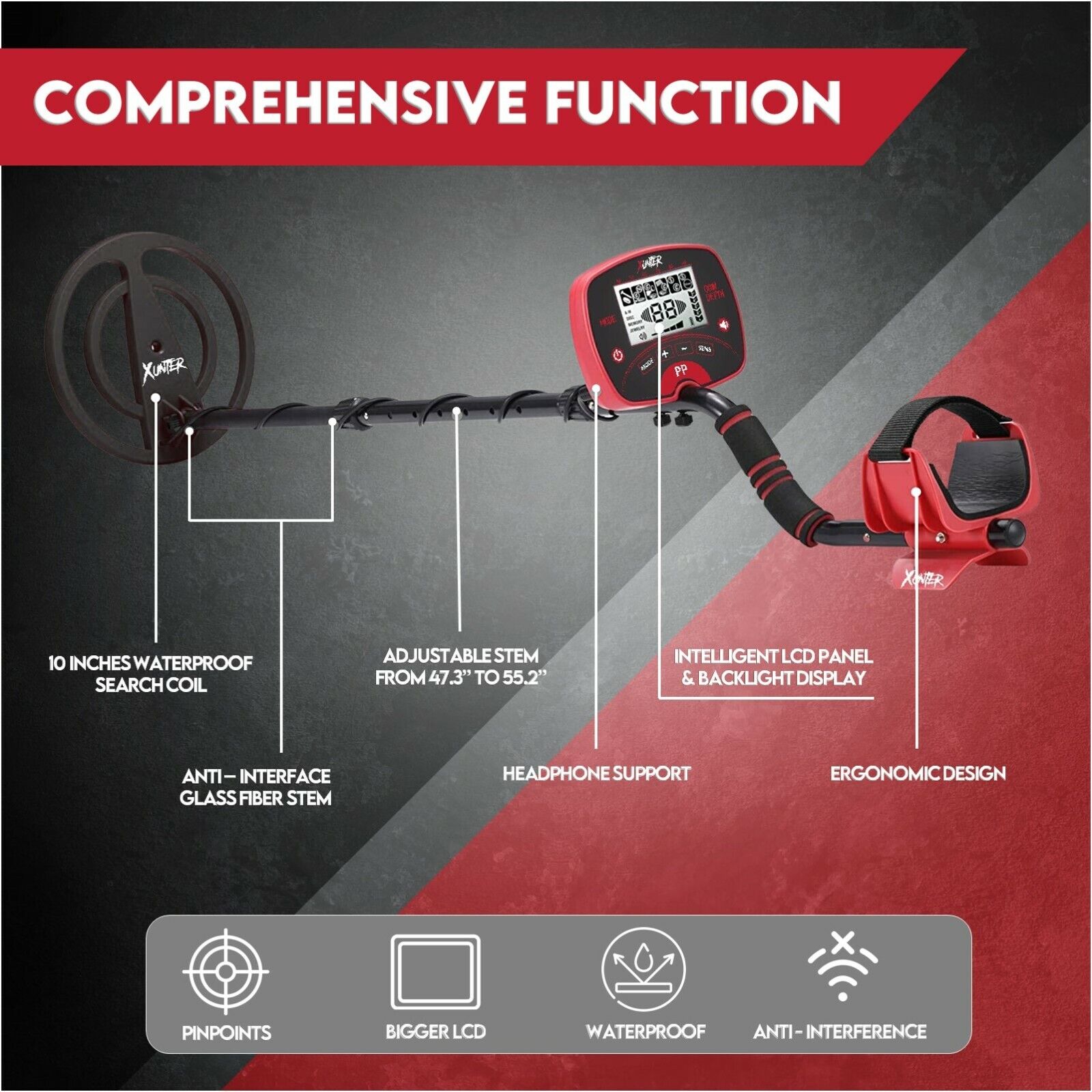 【10inch Waterproof Search Coil】 Xunter IP68 metal detector can work well in shallow water. Perfect for beach, stream, and during rainy days and find treasures hidden from the eyes of the majority. Metal detectors can be easily cleaned and saved. (Note: the control box is not waterproof)
