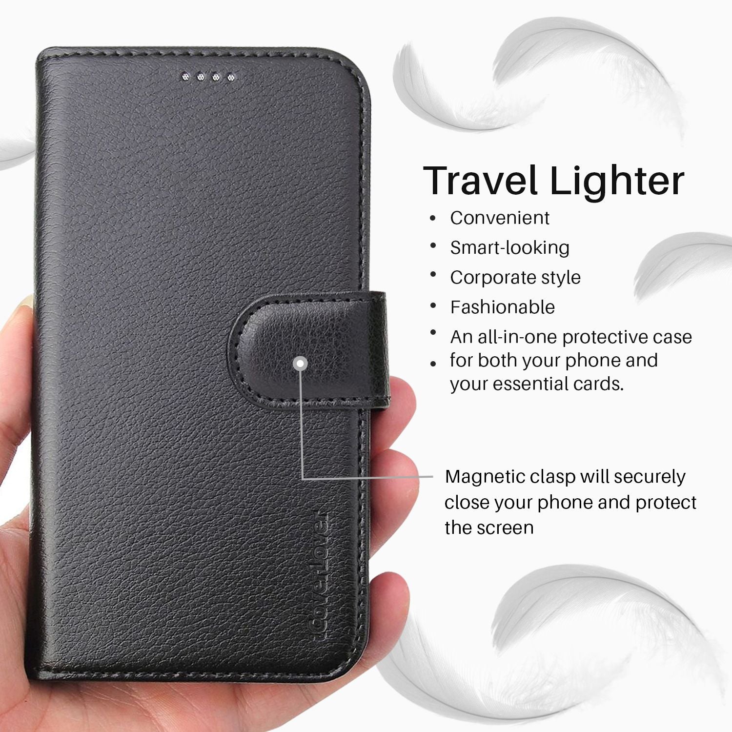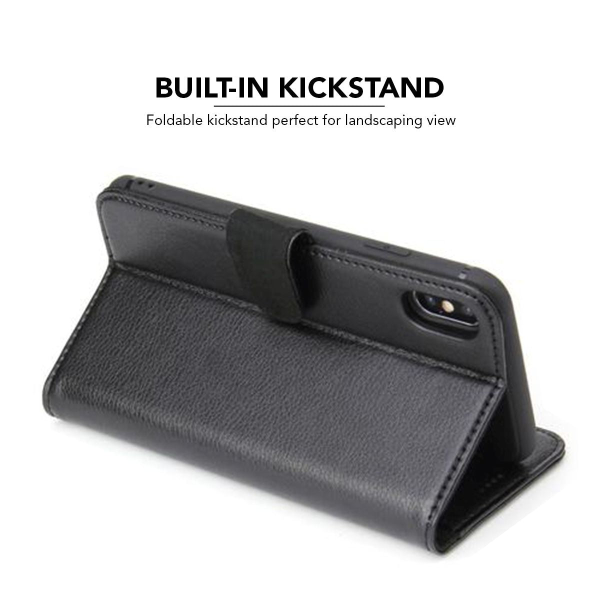 This iPhone XS Max Case Real Top-grain Cow Leather Wallet Folio Case with 3 Card Slots, 1 Cash Compartment, Impact-proof, and Enhanced Grip includes: