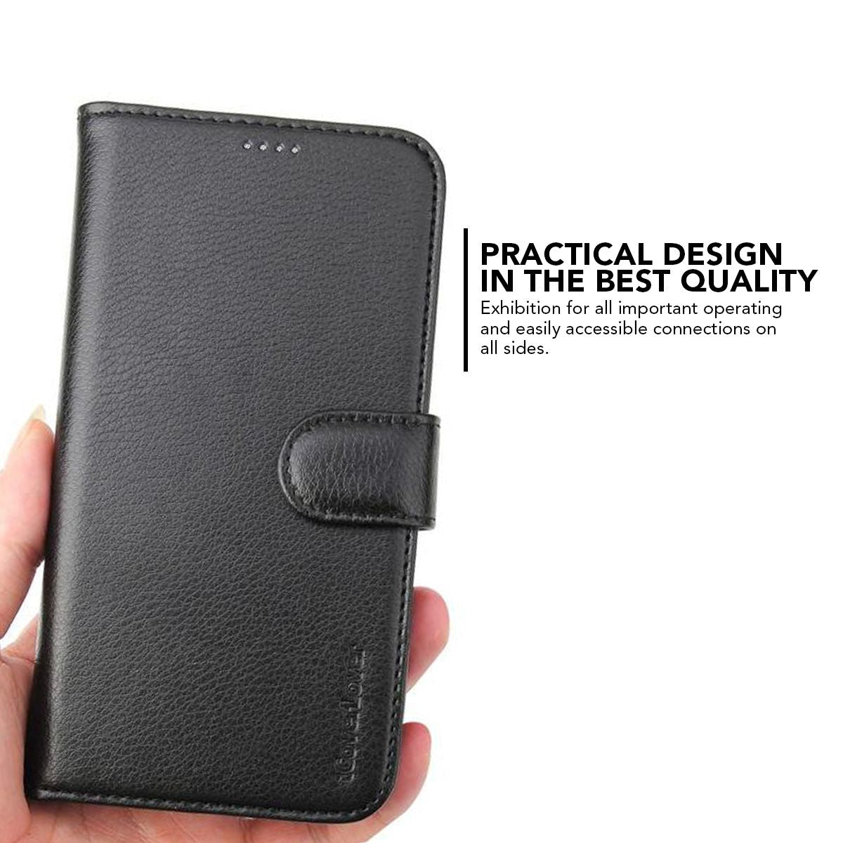 For iPhone XS Max Case iCoverLover Black Genuine Cow Leather Wallet Folio Case, 3 Card Slots, 1 Cash Compartment
