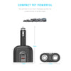 Powering up to two in-car portable electronic devices that require cigarette lighter, such as GPS, dashcam, DVD player or portable cooler on the go.