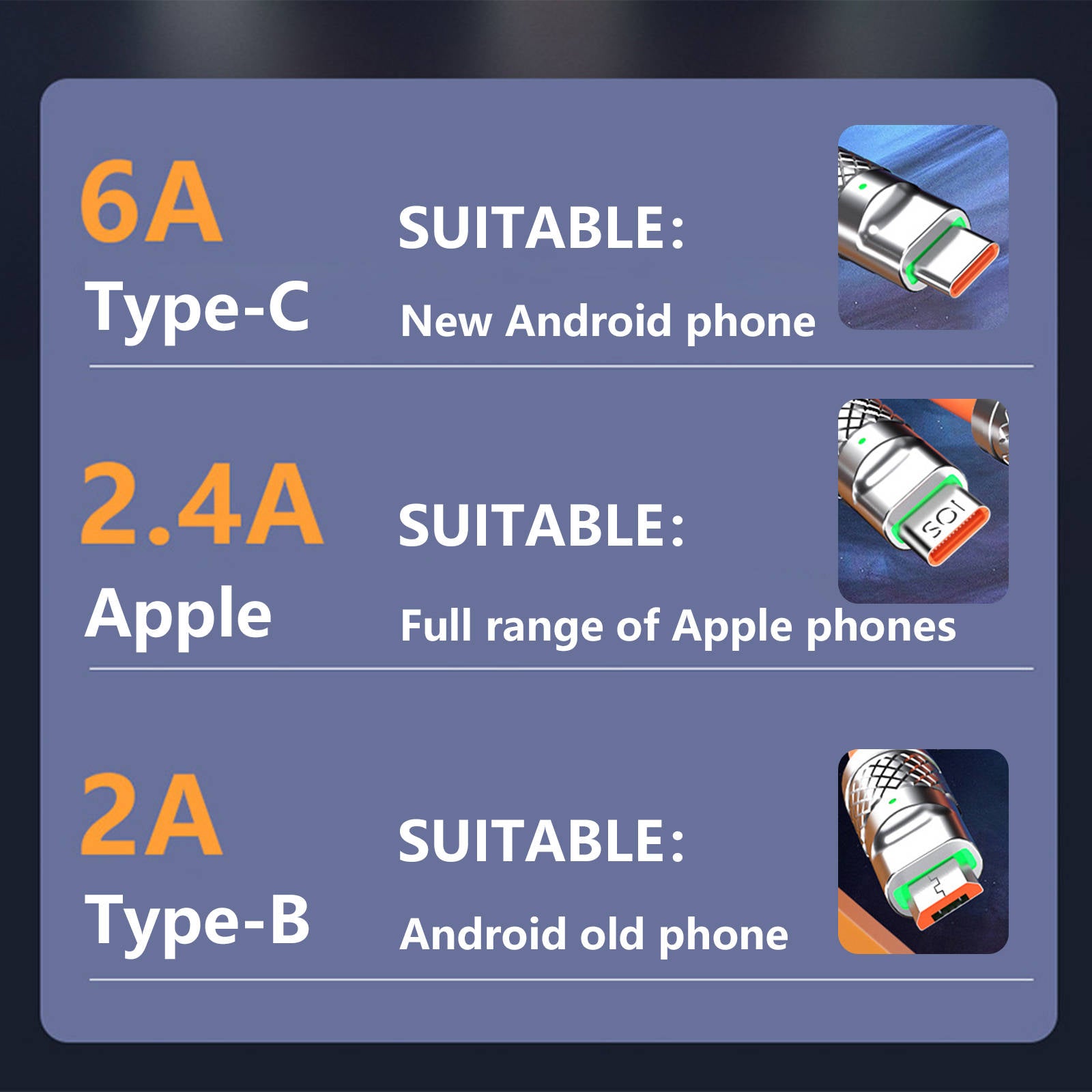 This 3-in-2 USB cable is an all-in-one solution for charging your mobile devices. The versatile design includes micro USB, Type-C, and iPhone connectors, allowing you to charge a variety of devices with just one cable. The compact and lightweight design makes it easy to take with you on the go, ensuring you have a reliable charging solution no matter where you are