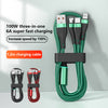 Mobax Nylon Woven 100W Super Fast Charging 3-in-1 USB Charger Charging Cable Green