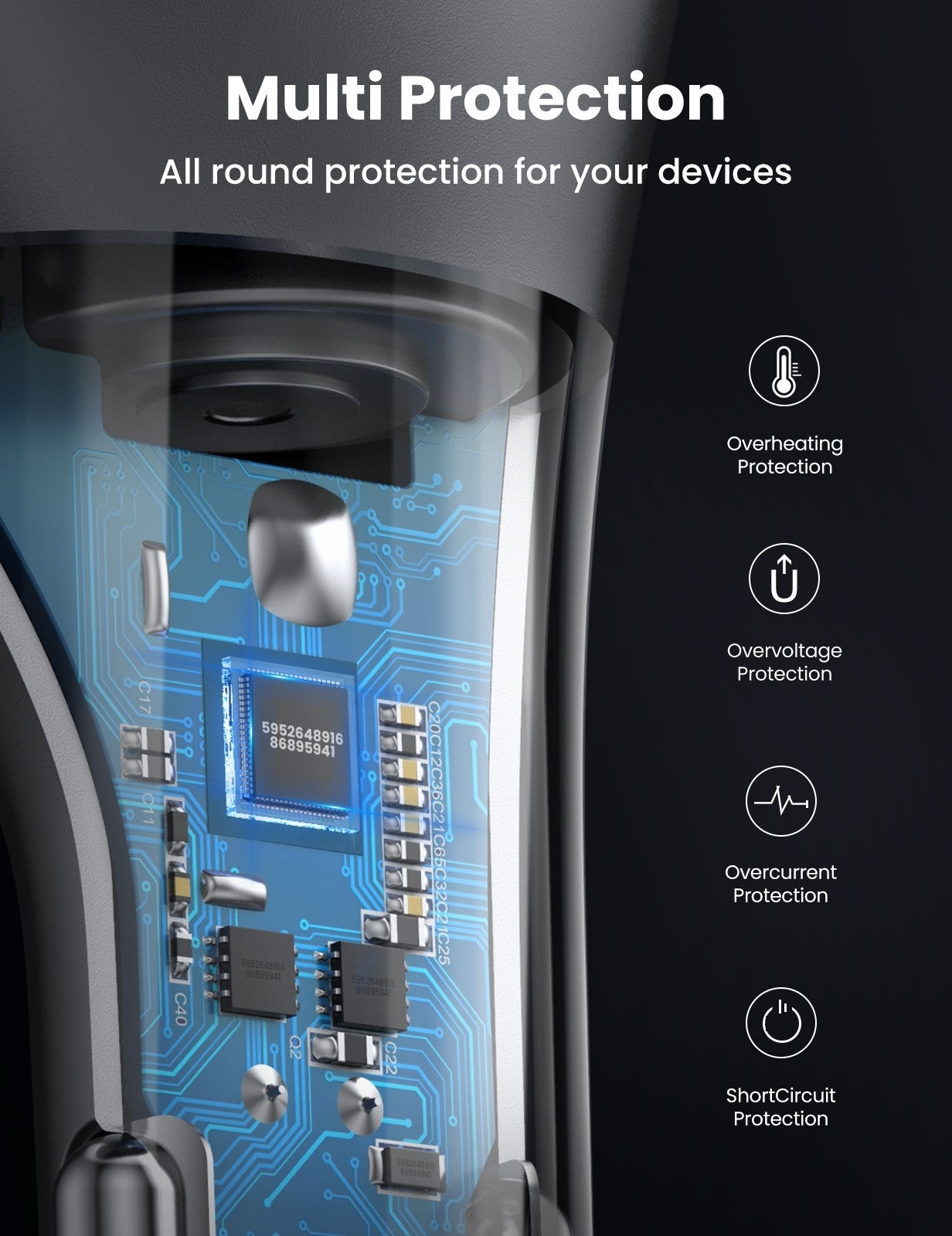 UGREEN dual-port car adapter has an integrated intelligent power management chip that automatically offers over-temperature, over-current, over-charging, over-voltage protection, therefore it provides stable performance through a series of charging tests and quality assurance.