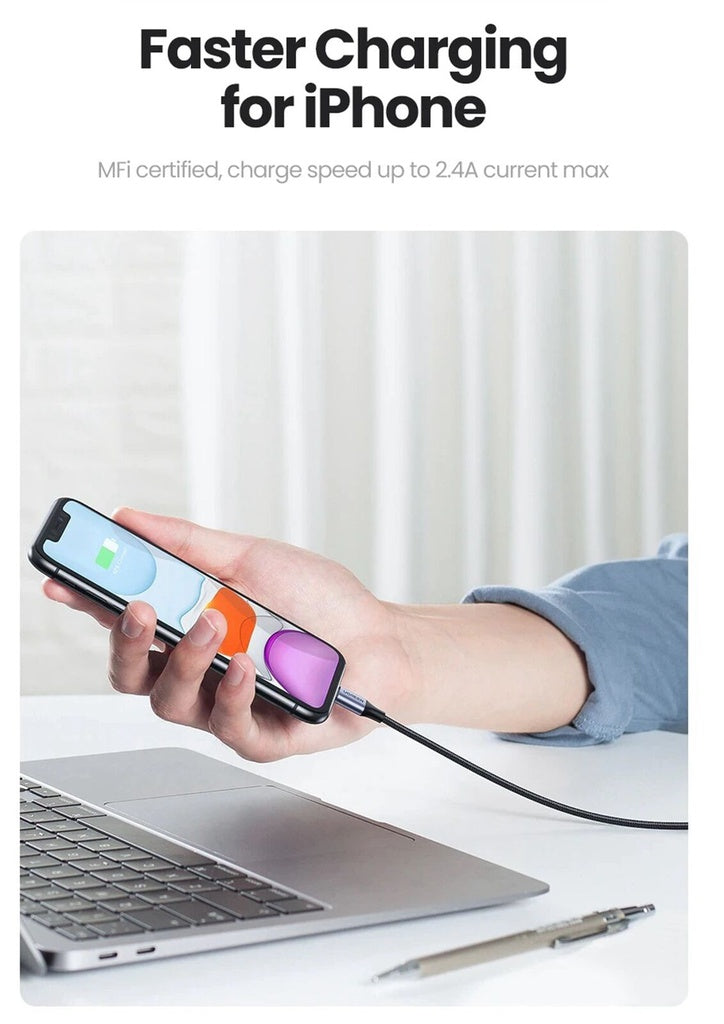 UGREEN Armored USB A to Cable 1M Black Fast Charging iPhone iOS