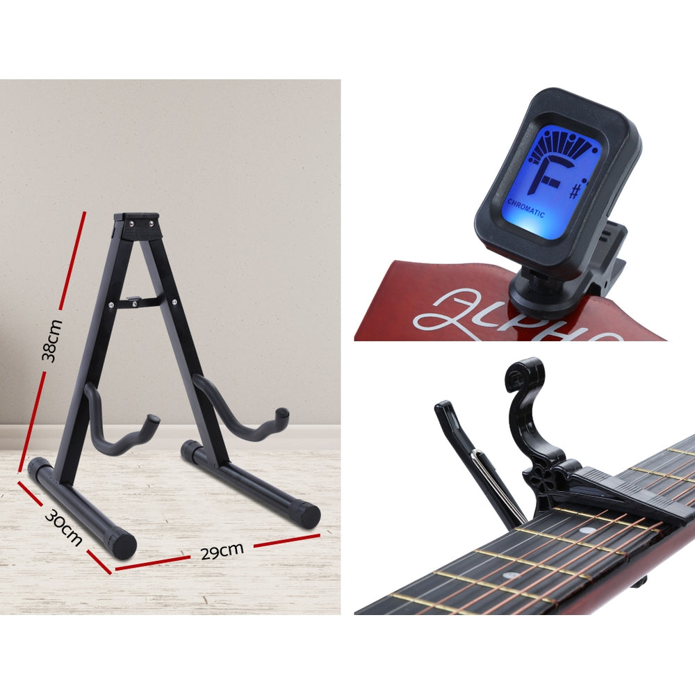 Accessories: 2 picks, 6 strings, shoulder strap, guitar stand, tuner, capo and carry bag