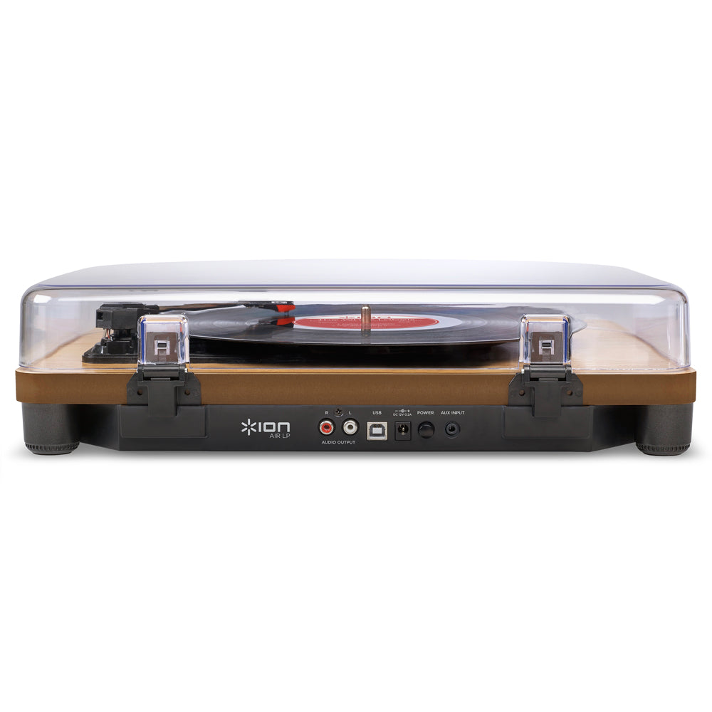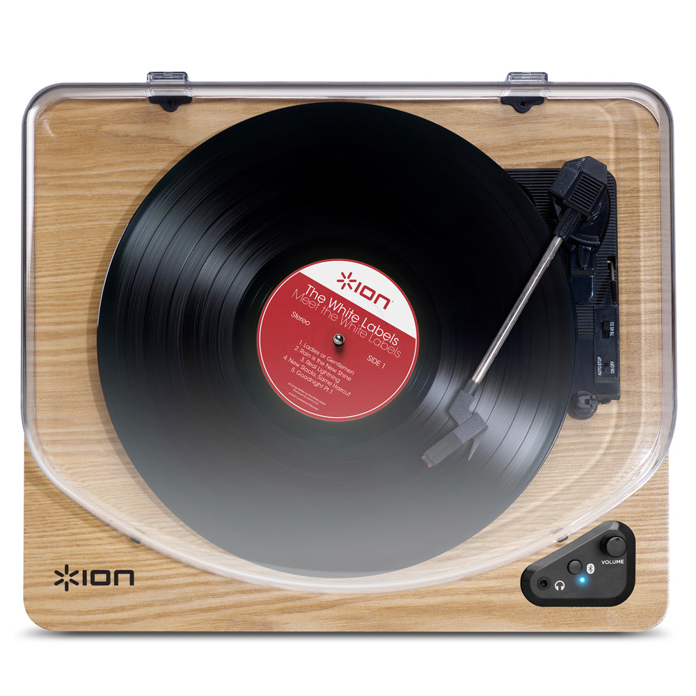 ION Audio Air LP Turntable - Wood - Hassle-free setup for your vinyl record collection - Premium turntable with wireless Bluetooth streaming; simply pair Air LP with your speaker and enjoy fuss-free connectivity with a 10 m range. Hookup flexibility - Discretely located RCA ports for playback through an existing wired speaker / HIFI system and a 1/8- Inch headphone output for private listening. The centrepiece of your vinyl record listening experience - 1/8- Inch Aux input and included cable to convert (or stream wirelessly) from other media sources including cassette players / CD players. Play your entire vinyl record / LP collection - Plays and converts 33 1/3, 45 and 78 RPM records (78 RPM stylus sold separately) Digitise your collection - Convert tracks into digital files via USB onto your PC or Mac with the included ION audio EZ conversion software.