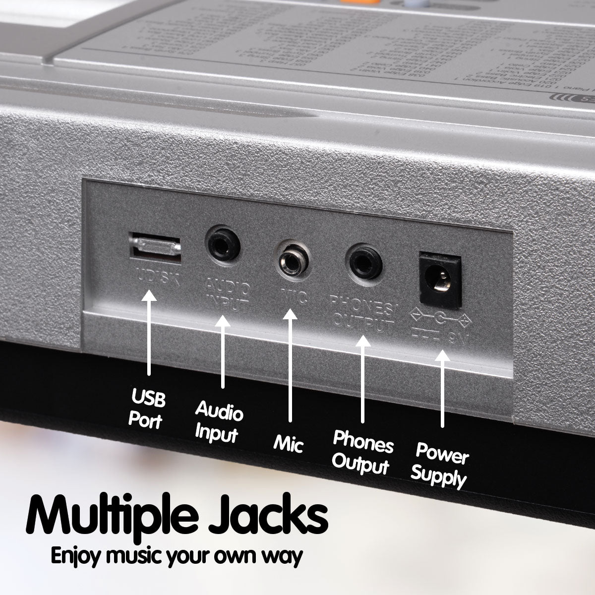 Karrera 61 Keys Electronic Keyboard Piano with Stand - Silver