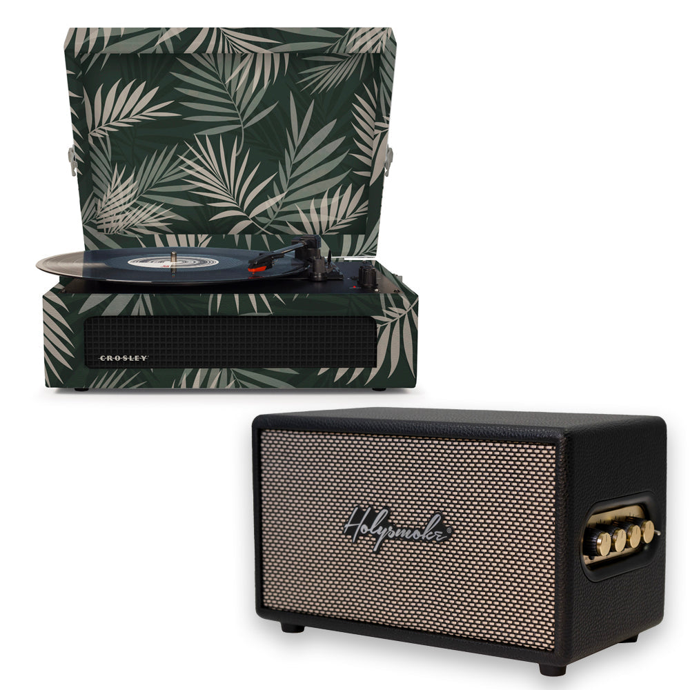 Crosley Voyager Bluetooth Portable Turntable - Botanical + Bundled HolySmoke Bluetooth Retro Speaker - Black