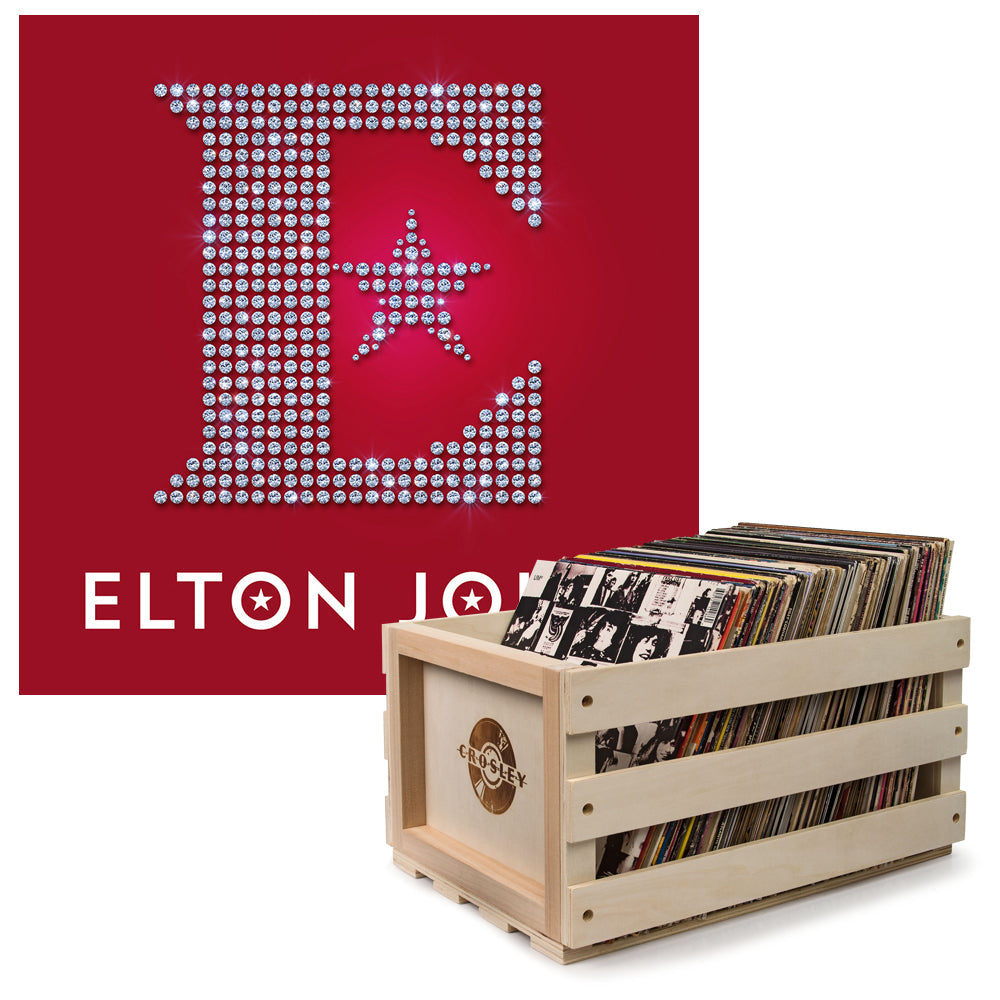 Crosley Record Storage Crate & Elton John - Diamonds - Double Vinyl Album Bundle